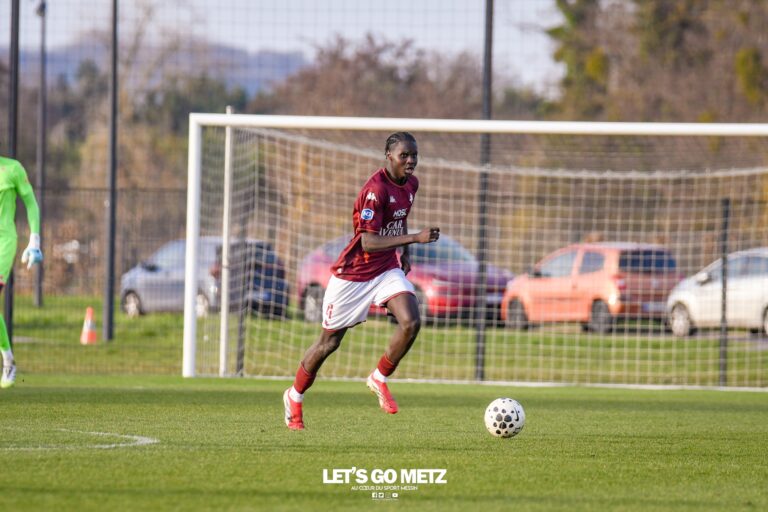 47 Le jeune défenseur de l’équipe réserve du FC Metz, Abdoulaye Nassoko, vient de signer son premier contrat professionnel. Âgé de 18 ans, Nassoko est désormais lié avec les Grenats jusqu’en juin 2029. Et de trois ! Après le passage en professionnel de Nathan Mbala et d’Adam Marchal, le FC Metz a annoncé la signature d’Abdoulaye Nassoko. Membre important de l’équipe réserve du FC Metz évoluant en National 3, Nassoko s’est engagé jusqu’en juin 2029 avec les Grenats. Arrivé au centre de formation messin en 2023, le néo-Grenat a aussi intégré les sélections de jeunes en Équipe de France, des U16 aux U18. Nassoko vient d’ailleurs de se qualifier avec les U18 pour le tour 2 des éliminatoires de l’Euro U19 2027. 🆕 ✍️Le début d'une nouvelle aventure 😏 pic.twitter.com/DHn0NYchwy— FC Metz ☨ (@FCMetz) April 2, 2026 De par sa taille (1,89 m), Nassoko s’impose physiquement dans le jeu et dans les duels au sol comme aériens. Sous les ordres d’Abasse Ba avec l’équipe réserve, Abdoulaye Nassoko a principalement joué en tant que défenseur central, en compagnie de Moustapha Diop, un autre jeune joueur professionnel arrivé de Génération Foot à l’été 2025. Cette saison, Nassoko a participé à 14 des 21 matchs de l’équipe évoluant en National 3, tous en tant que titulaire.Cette signature de Nassoko ne sera normalement pas la dernière pour les Grenats. En effet, le passage en professionnel d’un autre élément de la formation messine, Believe Munongo, est prochainement attendu. Crédit photos : Mikaël Frank / Let’s Go Metz