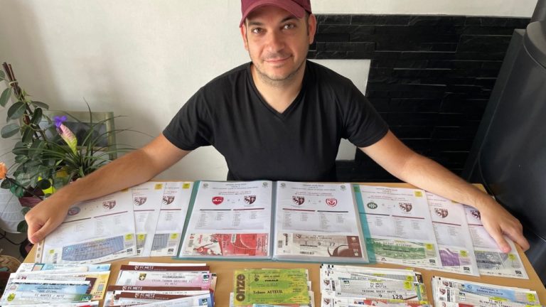 830 Certains supporters collectionnent les maillots de football et d’autres des écharpes de supporters. Ainsi, nous sommes partis à la rencontre d’Adrien, qui collectionne lui des billets de match. Avec un site internet et avec l’aide d’autres fans, Adrien a aujourd’hui une collection impressionnante de billets puisqu’il n’en possède pas moins de 1170. Entretien avec un collectionneur hors pair ! Peux-tu te présenter en quelques mots ?Je m’appelle Adrien Bottiglione, j’ai 33 ans et je suis adjoint technique au sein d’une collectivité, dans le secteur de l’environnement.Amoureux du FC Metz (et du foot) depuis mes 10 ans, je me rends à Saint-Symphorien tous les 15 jours et dans la mesure du possible, je fais également quelques matchs à l’extérieur pour aller soutenir les Grenats. Comment t’est venue cette passion ?J’ai commencé à fréquenter Saint-Symphorien en février 1998, quand mon papa nous a acheté nos places pour Metz-Strasbourg. C’était mon premier match de foot au stade et je voulais en garder un souvenir. J’ai donc gardé les tickets dans une boîte métallique, et au fur et à mesure qu’on allait au stade, ils se sont tellement accumulés que j’ai dû opter pour une boîte plus grande. Combien possèdes-tu de billets ?1170 à l’aube de cette nouvelle saison. De la saison 1973-1974 au dernier en date, l’amical contre Troyes fin juillet.Au début, je les rangeais dans une boîte métallique en les mettant par date de match. Et puis depuis quelques années, ils sont dans une boîte achetée chez IKEA.Je réfléchis à l’idée de changer de méthode de rangement, à savoir les mettre dans des pochettes plastifiées, avec une feuille résumant le match (buteurs, compo, date et score). Je trouve que ça donnerait plus de charme à ma collection et ce serait encore plus complet. Un des nombreux billets d’Adrien Est-ce que c’est difficile pour toi d’en trouver et comment faire pour t’aider ?Pendant 20 ans c’était un jeu d’enfant ! Déjà à l’époque je me souviens que j’allais chercher mes tickets chez les vendeurs agréés donc aucun souci pour en récupérer. Après je me suis mis à envoyer des courriers a l’ensemble des clubs professionnels pour leur demander de m’aider, et certains ont joué le jeu c’était super cool ! Et puis maintenant, avec Internet et les réseaux sociaux, je contacte directement les clubs quelques jours avant la rencontre et globalement, j’arrive toujours à récupérer un ticket. Depuis quelques années et l’apparition des e-tickets + les cartes d’abonnement, ça devient de plus en plus compliqué de trouver des tickets auprès des supporters ou en tribune après les rencontres. Avec le contexte sanitaire , c’est pire ! Depuis 18 mois c’est devenu quasiment mission impossible. Les clubs passent de plus en plus à la dématérialisation et, même si je comprends cette démarche, pour le collectionneur que je suis c’est un véritable crève-cœur la disparition petit à petit des tickets. Pour m’aider, je vous invite déjà à me suivre sur les réseaux sociaux : Instagram (où je suis le plus actif), Twitter et Facebook et à aller consulter mon site web (www.fcmetztickets.fr).Ensuite si vous avez des tickets qui traînent dans le fin fond de vos tiroirs et que vous n’en faites rien, contactez-moi ! Je suis sûr qu’ils seront mieux chez moi que chez vous. (Rires)Et pour finir, si vous aller voir le FC Metz à domicile ou à l’extérieur (je pense normalement aux parcages), regardez autour de vous si vous voyez des tickets pour ma collection ! Plus il y a du monde qui regarde autour de soi, plus j’ai de chance d’agrandir ma collection ! Comment prends-tu le fait que cette année, il n’y aura plus de billet physique ?Sur le coup, je me suis dit que c’était un cauchemar ! C’est déjà devenu compliqué de trouver mon bonheur lors des rencontres à l’extérieur, alors si maintenant je dois aussi galérer à domicile, je ne suis pas verni. Mais c’est aussi ce qui fait le charme d’une collection, de passer des heures et des heures à fouiller sur les réseaux, solliciter les supporters, les clubs, etc…Mais je suis entré en contact avec le FC Metz et, petite exclu pour Let’s Go Metz, j’aurai des tickets des rencontres à domicile. Quel est ton plus beau Graal ?C’est difficile parce que j’ai pas mal de belles pièces.Des tickets en Coupe d’Europe, des finales de coupes nationales, des tickets du club en National ou encore quelques tickets de matchs qui ne se sont pas joués à cause du Covid ou à huis clos plus récemment.Pour la symbolique, je dirais mon tout premier, Metz-Strasbourg février 1998. Quel est le billet pour lequel tu serais prêt à tout pour l’obtenir ?Ce ne sera pas original comme réponse mais Barcelone-Metz 1984 ! J’ai le ticket du match à domicile mais celui de l’exploit au Camp Nou manque à ma collection !J’ai déjà été contacté par des vendeurs mais la particularité de cette collection c’est que je mise sur le don et la générosité des personnes. 9 fois sur 10 ça se passe bien et les supporters sont content de contribuer à ma collection. Est-ce que les billets des matchs auxquels tu as assisté ont plus de valeur à tes yeux que ceux que tu récupères ?Forcément quand je revois certains de mes tickets, ce sont des souvenirs au stade qui remontent ! Des buts mémorables, de la joie à fêter les remontées et les titres, des bons moments passés avec des amis/familles, des rencontres avec des abonnés, etc… Mais aussi des souvenirs un peu moins bons voire douloureux.Mais avant tout, fcmetztickets a pour but de retracer l’histoire du FC Metz, et j’ai choisi de le faire au travers des tickets. Sur les 20 dernières années il ne me manque que très peu de tickets, ce sont les tickets avant les années 2000 que je recherche le plus mais comme ce sont les plus anciens, ce sont aussi les plus c