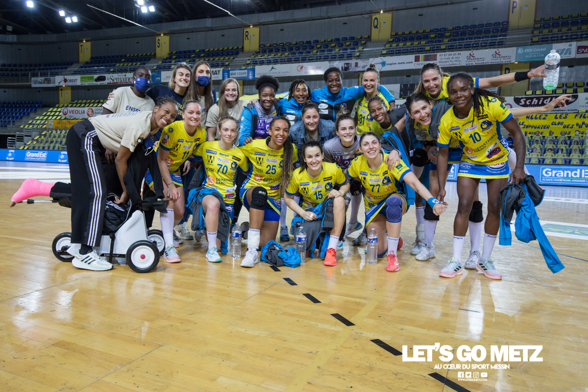 349 Ce Mercredi, les joueuses de Metz Handball ont poursuivi leur bonne série en signant face aux Nantes Atlantique Handball leur 3ème victoire de rang. Parmi les Dragonnes les plus en vues lors de ce match nous avons retenu Ailly Luciano, qui s’est confiée à la sortie du terrain sur ses sensations et sa vision des dernières échéances de la saison. Ce match face à Nantes n’a pas été de tout repos, il y a eu du beau jeu des deux côtés. Quelle est l’analyse de cette rencontre à la sortie du terrain, après avoir scoré 6 buts à titre personnel ?On a bien joué, on a gagné donc c’est très bien. Bien sûr, ça fait du bien de jouer tout court. Le niveau de l’équipe ce n’est pas d’aujourd’hui, on a joué toute l’année à ce niveau là. Mais ça fait du bien de gagner et de faire un bon match personnellement, mais l’important c’est le résultat de l’équipe. Parmi les principaux vis à vis ce soir il y avait Marion Maubon, comment se sont passé les retrouvailles ?J’ai bien aimé ! On se connaît bien, j’ai marqué quelques buts, elle en a marqué aussi, c’était cool. Cette équipe de Nantes s’est bonifiée au long de la saison, aujourd’hui elles visent une performance au Final 4 d’European League, quelles sont leurs chances ?Honnêtement je n’ai pas vraiment suivi le déroulement de l’European League, mais je sais qu’elles ont des joueuses de qualité. Cette compétition est un niveau en dessous de celle que nous avons joué et pourtant ce soir elles ont joué un bon match. Au Final 4 elles auront toutes leurs chances bien sûr, dans ces moments là cela ne se joue pas sur le niveau que l’on avait ou quoi que ce soit, c’est la réalité d’un week end. Je suis sûr qu’elles vont tout donner pour faire une performance là bas. Pour Metz, la route est un peu différente puisque l’équipe sera à Besançon ce Dimanche pour le dernier match « régulier » des Playoffs. A quoi s’attendre lors de ce déplacement ?J’imagine que ça va être compliqué, que ça va être dur. Besançon joue encore les places Européennes, elles vont être à fond… Mais nous aussi, on prépare une finale et ce n’est pas en se reposant qu’on sera prêtes. On compte jouer une équipe qui est à fond et on s’attend à un beau match. Justement, il y a cette finale qui approche. Comment est ce que l’on aborde ces nouvelles rencontres contre Brest alors qu’elles se rapprochent rapidement ?On va dire que ça commence à faire beaucoup de rencontre contre Brest, mais je pense que c’est encore une occasion pour faire oublier les défaites. C’est une chance de montrer que non, elles ne vont pas tout nous prendre.J’espère qu’elles vont lever le pied ou faire un faux pas sur le match qu’il leur reste à jouer en saison régulière pour avoir l’avantage du terrain. Mais dans le fond, peu importe qui est premier ou qui est second, les deux équipes se rencontrent et ce qui compte à la fin c’est celui qui a gagné sur les 120 minutes. J’espère que ça sera nous, je vais tout donner, tout comme mes coéquipières, pour les battre. Propos recueillis et retranscrits par nos soins le 05/05/2021Crédit photo : Matthieu Henkinet