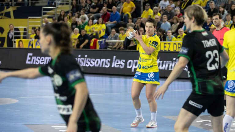 2,7K Contre l’Ukraine, Alina Grijseels s’est blessée à la cheville. La capitaine allemande et demi-centre messine est mise au repos avant une semaine importante de qualifications olympiques. Petite frayeur pour Alina Grijseels durant les éliminatoires pour l’EHF Euro 2024 face à l’Ukraine. Sur un tir, la capitaine de la sélection allemande a subi une faute qui n’a pas été anodine. Contrainte de quitter rapidement le terrain, l’internationale a effectué des examens qui ont révélé une blessure à la cheville gauche. De fait, la demi-centre n’est pas en capacité de conclure les qualifications contre Israël, samedi et dimanche. Elle reste cependant avec sa sélection pour recevoir des soins quelques jours avant le Tournoi de Qualification Olympique que ses coéquipières et elle doivent disputer à domicile, du 11 au 14 avril. Le sélectionneur Markus Gaugisch reste optimiste quant à la participation de sa métronome aux TQO. « Tout d’abord, nous sommes heureux que, d’après les images médicales, Alina n’ait pas subi de blessure grave », a-t-il déclaré pour Handball.net. Il n’est toutefois pas affirmatif au sujet de la durée d’indisponibilité. Son staff et lui-même suivent l’évolution et prendront une décision, la semaine prochaine, avant la rencontre les opposant à la Slovénie. Si l’absence devait se prolonger, cette blessure serait vraisemblablement un coup dur pour l’Allemagne qui souhaite disputer les Jeux Olympiques pour la première fois depuis 16 ans. Ce coup d’arrêt pourrait également avoir une importance pour Metz Handball qui aborde une fin de saison capitale sur les trois tableaux au retour de la trêve, comme ce 1/4 de final tant attendu face au CSM Bucarest, en Ligue des Champions. Pour espérer Paris 2024, l’Allemagne doit s’extirper d’un groupe dense composé de la Slovénie (11 avril), du Monténégro (13 avril) et du Paraguay (14 avril). Crédit photo : Matthieu Henkinet/Let’s Go Metz