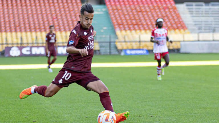 590 Depuis son arrivée au FC Metz, Amine Bassi n’est que l’ombre de lui-même. Annoncé comme une pépite, le milieu de terrain marocain n’a jamais su se faire sa place en Moselle. Il pourrait même quitter le club cet hiver afin de rejoindre Houston, en MLS. Arrivée à l’été 2021 en provenance de l’AS Nancy Lorraine, Amine Bassi ne s’est jamais imposé au FC Metz. Il avait pourtant tout d’une bonne recrue. Après s’être montré décisif à de nombreuses reprises en Ligue 2 sous le maillot rouge et blanc, le milieu de terrain décide de prendre l’A31, direction le Stade Saint Symphorien en signant un contrat de quatre saisons. Toutefois, l’international marocain ne restera pas gravé dans les annales du club. Du moins, pas dans la catégorie révélation. Comme de nombreux de joueurs, ces dernières années, Amine Bassi fait office d’une erreur de recrutement. Après un prêt du côté de Barnsley en Championship, conclu par une relégation en League One, Amine Bassi était de retour au FC Metz. Cependant, il ne figure absolument pas dans les plans de Laszlo Bölöni. En effet, le natif de Bezons n’est apparu qu’à quatre reprises cette saison, pour un total de 123 minutes de jeu. En quête de temps de jeu et d’un nouveau défi, le numéro 10 grenat pourrait quitter le FC Metz dès cet hiver. Selon le journaliste américain Tom Bogert, Houston Dynamo aurait finalisé un accord pour le transfert définitif du milieu de terrain marocain. S’il ne venait pas à quitter la Moselle cet hiver, le milieu de terrain pourrait toutefois rejoindre la franchise américaine cet été pour un contrat de deux saisons, plus une en option. Pour l’instant, le montant de l’éventuelle transaction n’a pas été communiqué. Photos : Julien Buret/ Let’s Go Metz