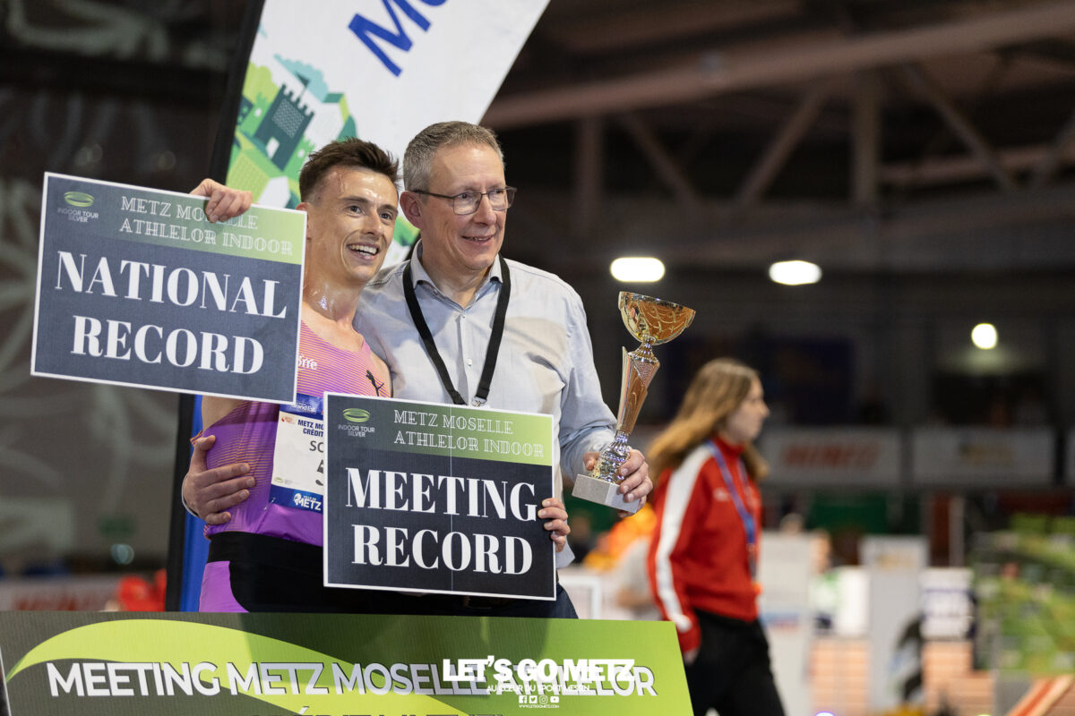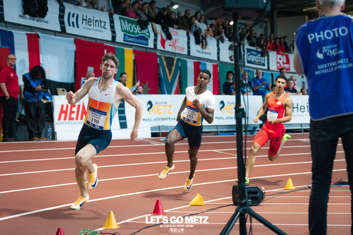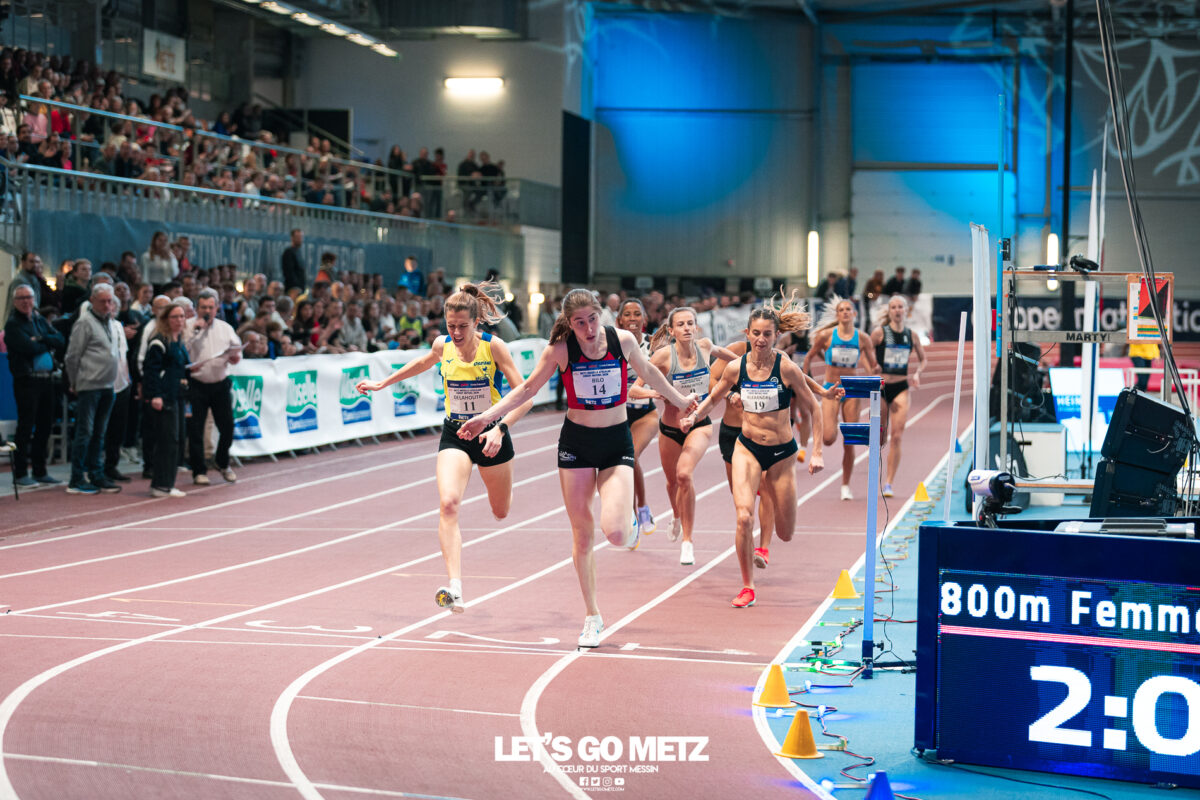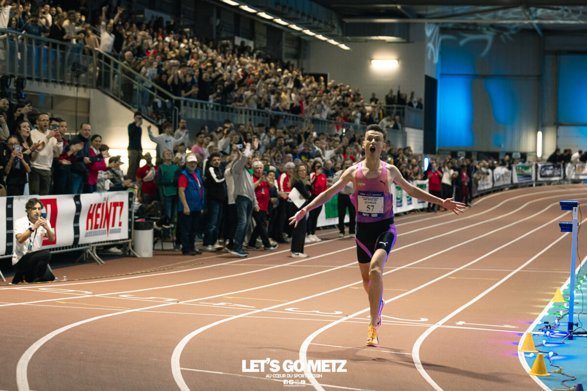107 Record de France pour Yann Schrub « Merci à Dominique Abisse d’avoir organisé cette course pour moi », déclarait Yann Schrub à l’issue de la course de 3000m. Le Mosellan a en effet eu le luxe de choisir ses lièvres, qui l’ont placé dans les cordes d’un chrono exceptionnel pour la première partie de la course. Le reste, Yann Schrub s’en est occupé lui-même, avec un finish extraordinaire. Résultat : record de France et record du meeting (7:29:38). Les larmes aux yeux, Yann Schrub célébrait avec son public, « un des meilleurs moments de sa carrière ». Les stars font le show Le champion du monde du saut en longueur Mattia Furlani ne s’est pas baladé à Metz. L’Italien s’est retrouvé à égalité avec Bozhidar Saraboyoukov, en fixant le record mondial de l’année à 8m39. Un des moments forts de la journée. Mais c’est bien Mattia Furlani qui remporte finalement le concours, grâce à un meilleur deuxième saut. Le record du meeting reste inchangé à 8m40. Dans le concours de saut à la perche féminin, Tina Sutej était en démonstration. A 37 ans, la Slovène continue de briller sur la scène internationale. Ce dimanche, elle a égalé son record personnel avec une barre à 4m80. Femke Bol, la grande spécialiste du 400m, a couru le premier 800m de sa carrière. Sans surprise, elle remporte la course (1:59:07), tout en semblant bien loin de son meilleur niveau. La néerlandaise récolte ainsi une nouvelle victoire à l’Athlelor. La journée a été plus compliquée pour la messine Auriana Lazraq Khlass. L’heptathlonienne a fini dernière en 200m (niveau C) ainsi que du 60m haies où elle a participé à la finale B après avoir été disqualifiée en série A. Résultats du plateau international 400 m (h) : Attila Molnar (Bul) ; 45:57 Saut en longueur (h) : Mattia Furlani (Ita) ; 8m39 Saut à la perche (f) : Tina Sutej (Slo) ; 4m80 3 000 m (f) : Birtukan Molla (Eth) ; 8:40:49 400 m (f) : Henriette Jaeger (Nor) ; 50:62 1 500 m (h) : Samuel Chapple (Nl) ; 3:35:83 60m (f) : Patrizia Van Der Weken ; 7:08 60 m haies (f) : Pia Skrzyszowska (Pol) ; 7:82 3 000 m (h) : Yann Schrub (Fra) ; 7:29:38 800 m (h) : Mohamed Ali Gouaned ; 1:44:67 800 m (f) : Femke Bol (Nl) ; 1:59:07 200 m (f) : Jael Bestue (Esp) ; 22:69 Crédit photo : Julien Buret / Let’s Go Metz