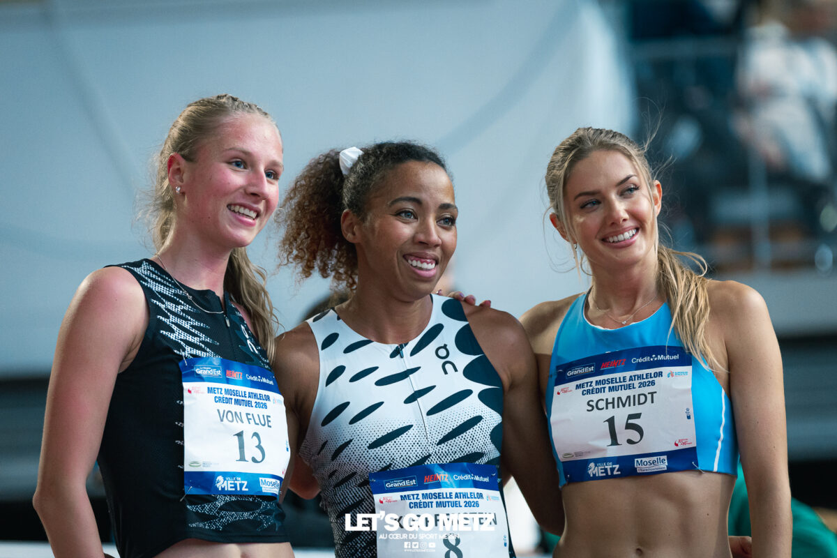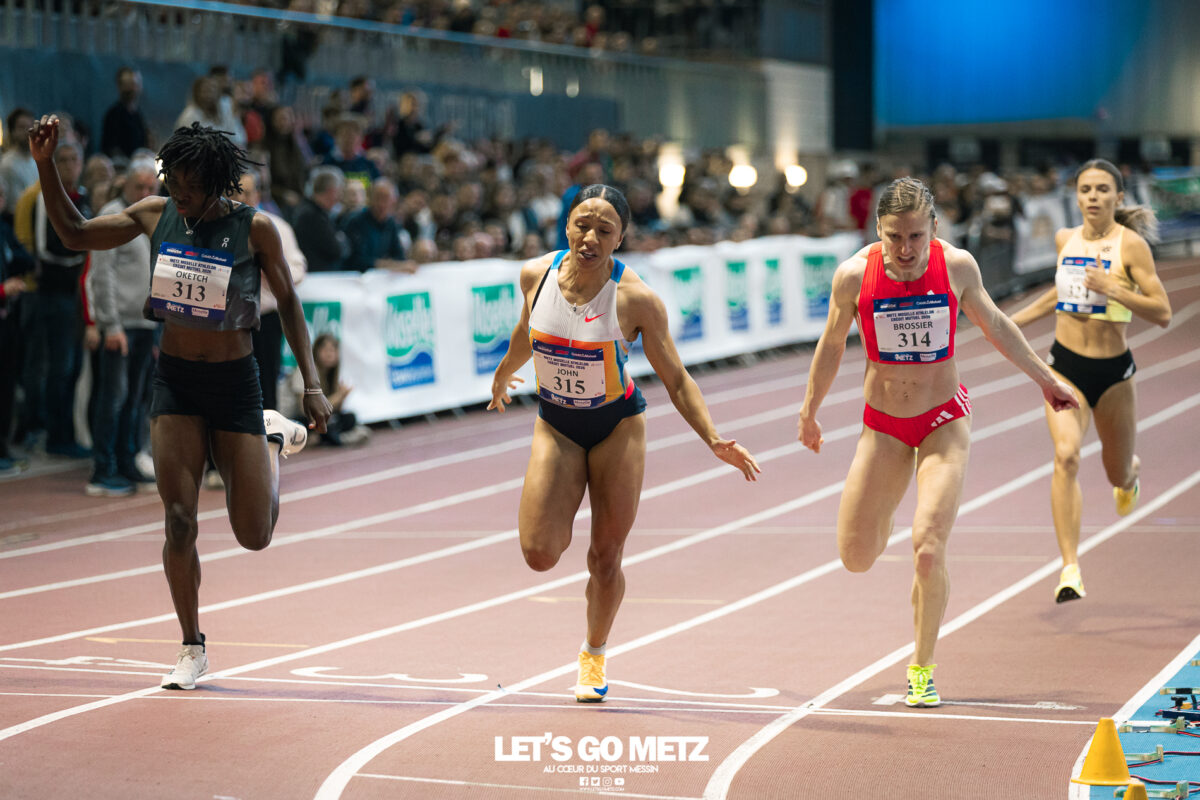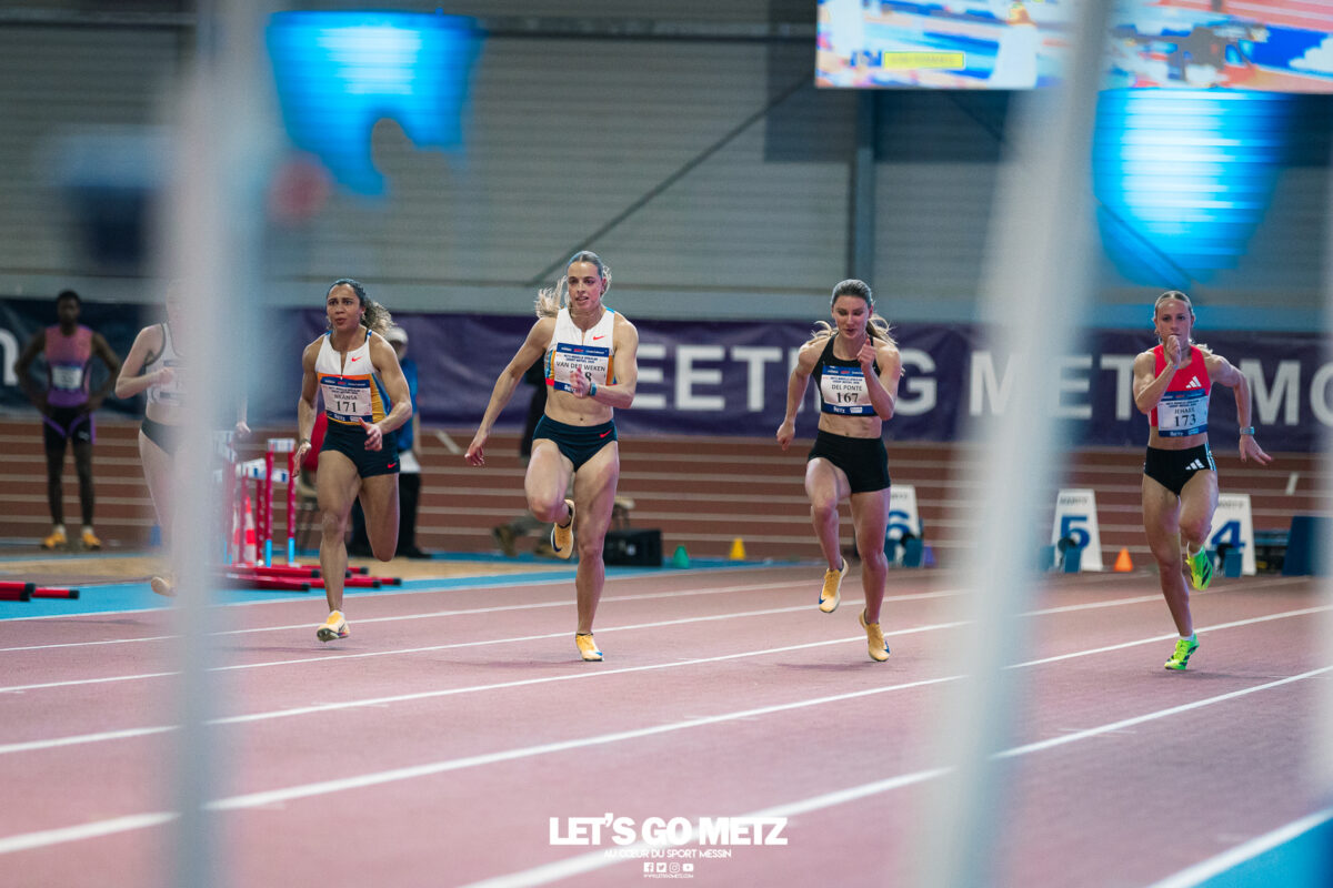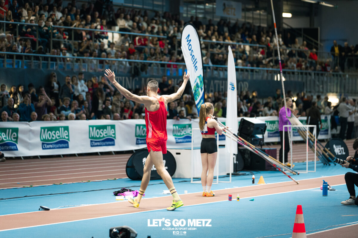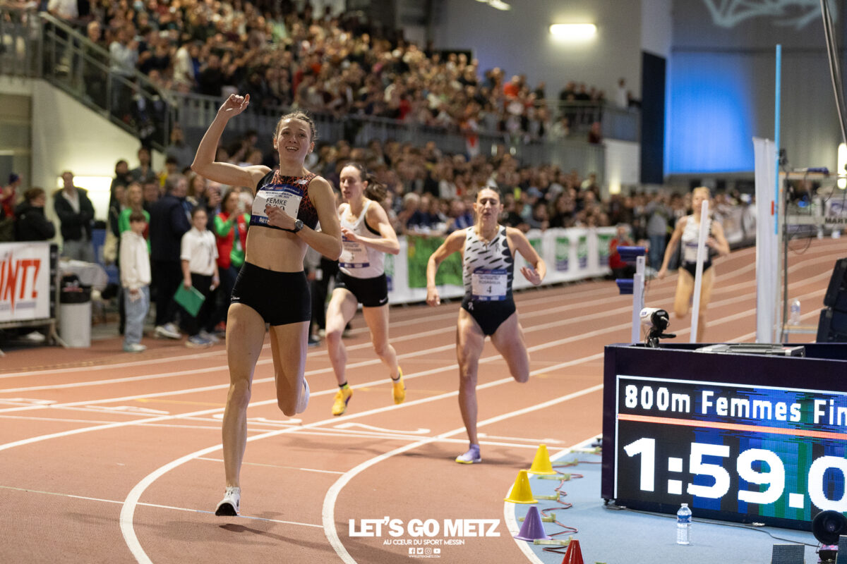 107 Record de France pour Yann Schrub « Merci à Dominique Abisse d’avoir organisé cette course pour moi », déclarait Yann Schrub à l’issue de la course de 3000m. Le Mosellan a en effet eu le luxe de choisir ses lièvres, qui l’ont placé dans les cordes d’un chrono exceptionnel pour la première partie de la course. Le reste, Yann Schrub s’en est occupé lui-même, avec un finish extraordinaire. Résultat : record de France et record du meeting (7:29:38). Les larmes aux yeux, Yann Schrub célébrait avec son public, « un des meilleurs moments de sa carrière ». Les stars font le show Le champion du monde du saut en longueur Mattia Furlani ne s’est pas baladé à Metz. L’Italien s’est retrouvé à égalité avec Bozhidar Saraboyoukov, en fixant le record mondial de l’année à 8m39. Un des moments forts de la journée. Mais c’est bien Mattia Furlani qui remporte finalement le concours, grâce à un meilleur deuxième saut. Le record du meeting reste inchangé à 8m40. Dans le concours de saut à la perche féminin, Tina Sutej était en démonstration. A 37 ans, la Slovène continue de briller sur la scène internationale. Ce dimanche, elle a égalé son record personnel avec une barre à 4m80. Femke Bol, la grande spécialiste du 400m, a couru le premier 800m de sa carrière. Sans surprise, elle remporte la course (1:59:07), tout en semblant bien loin de son meilleur niveau. La néerlandaise récolte ainsi une nouvelle victoire à l’Athlelor. La journée a été plus compliquée pour la messine Auriana Lazraq Khlass. L’heptathlonienne a fini dernière en 200m (niveau C) ainsi que du 60m haies où elle a participé à la finale B après avoir été disqualifiée en série A. Résultats du plateau international 400 m (h) : Attila Molnar (Bul) ; 45:57 Saut en longueur (h) : Mattia Furlani (Ita) ; 8m39 Saut à la perche (f) : Tina Sutej (Slo) ; 4m80 3 000 m (f) : Birtukan Molla (Eth) ; 8:40:49 400 m (f) : Henriette Jaeger (Nor) ; 50:62 1 500 m (h) : Samuel Chapple (Nl) ; 3:35:83 60m (f) : Patrizia Van Der Weken ; 7:08 60 m haies (f) : Pia Skrzyszowska (Pol) ; 7:82 3 000 m (h) : Yann Schrub (Fra) ; 7:29:38 800 m (h) : Mohamed Ali Gouaned ; 1:44:67 800 m (f) : Femke Bol (Nl) ; 1:59:07 200 m (f) : Jael Bestue (Esp) ; 22:69 Crédit photo : Julien Buret / Let’s Go Metz