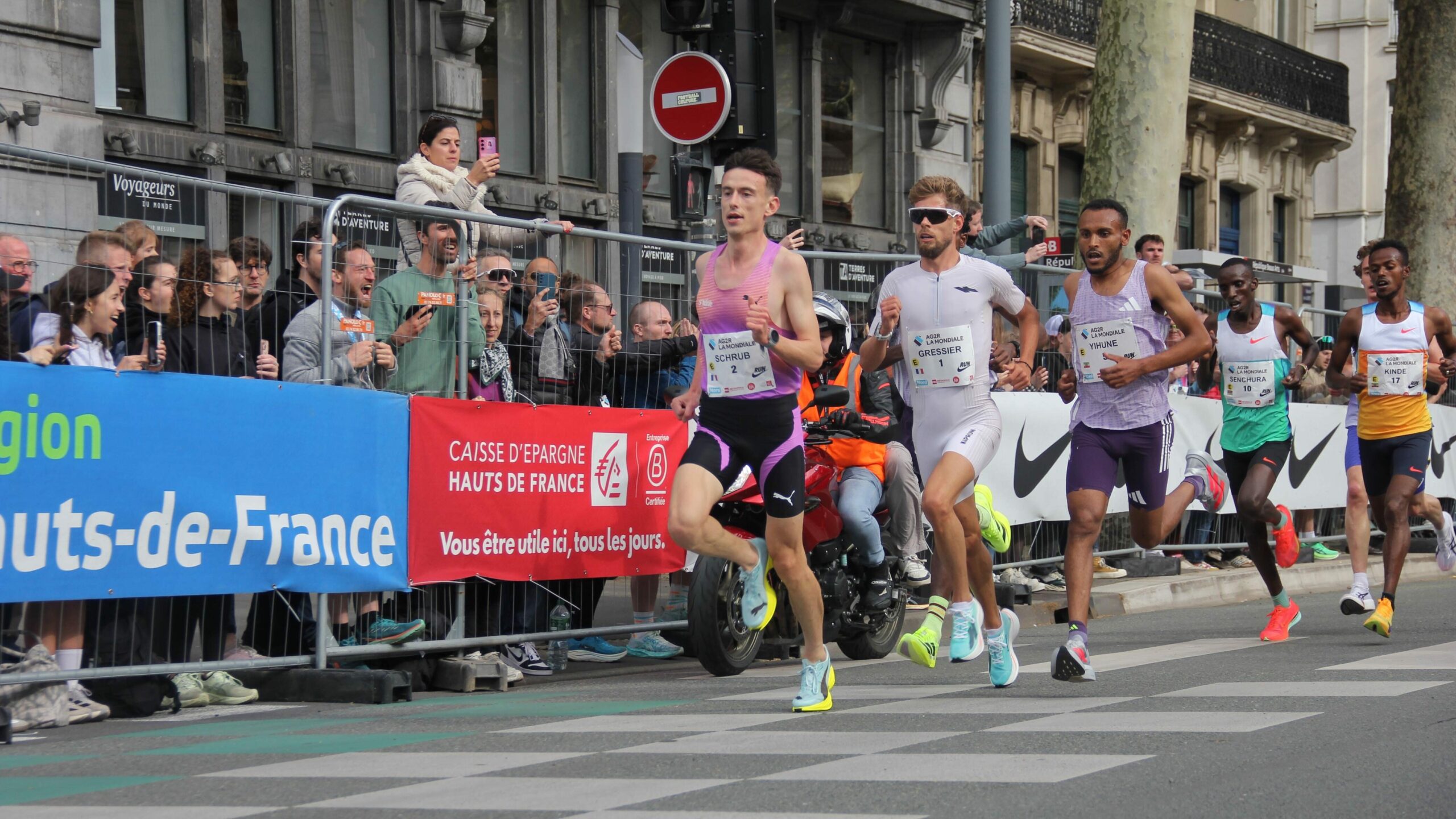 263 Le Mosellan Yann Schrub n’est pas passé loin d’un record du monde du 5 kilomètres ce samedi à l’Urban Trail de Lille. L’athlète français a perdu son rythme en toute fin de course et a franchi la ligne d’arrivée en 12’56. « Je n’avais plus les jambes pour l’attaque finale« , révèle Yann Schrub. On y a cru, mais ça ne sera pas pour cette fois. Le demi-fondeur thionvillois n’a pas réussi à battre le record du monde du 5 kilomètres. Au départ de l’Urban Trail de Lille ce samedi, le coureur mosellan a terminé à la troisième place du 5 kilomètres. « Je n’ai rien a regretter, j’ai fait la course que je devais faire », sourit Yann Schrub. Il a franchi la ligne d’arrivée en 12’56, soit 7 secondes de plus que le détenteur du record Berihu Aregawi (12’49). L’athlète de Sarreguemines est tout de même parvenu à baisser son chrono de 4 secondes. Une réelle prouesse d’autant qu’il n’a pas été aidé par la forte concurrence et par « une grosse douleur qui est arrivé cette semaine au niveau de l’aine », signale le coureur. Yann Schrub perd une bataille … mais pas la guerre La stratégie de course de Yann Schrub s’est avérée être efficace, mais pas assez pour décrocher le fameux sésame. Parti à 16h30 devant une foule lilloise en folie, le Mosellan s’est bien calé derrière les lièvres et a passé le premier kilomètre en 2’33, puis le deuxième en 5’12. Comme prévu, Yann Schrub et Jimmy Gressier sont restés aux avants-postes et ont rejoint le troisième kilomètre en 7’48, sur des bases de record du monde. Sur les deux derniers kilomètres, ils se sont retrouvés à quatre en tête de course, avec un passage en 10’24 au quatrième. Une réelle bagarre que Yann Schrub a perdu dans les derniers mètres. Le coureur thionvillois s’est fait devancer par son compatriote Jimmy Gressier, qui a remporté la course et abaissé son record d’Europe (12’51). Le Mosellan a lui franchi la ligne d’arrivée à la troisième place en 12’56. « Une course très compliqué » explique l’athlète français qui précise que les choses se sont emballées « surtout quand les lièvres se sont écartés« . Yann Schrub au bout de l’effort après sa course et son nouveau record personnel. Crédit photo : Renaud Chevalier Médaillé de bronze aux Championnats du monde de 3000m salle il y a quelques jours, le Mosellan est en grande forme et réalise un superbe début d’année. « La saison hivernale reste bonne donc aucun regret aujourd’hui », assure Yann Schrub. Avec ce nouveau chrono sur 5 kilomètres, il se rapproche très dangereusement du record du monde. Nul doute qu’il repartira à l’attaque tôt ou tard. Propos recueillis : Renaud ChevalierImage à la une : Renaud Chevalier