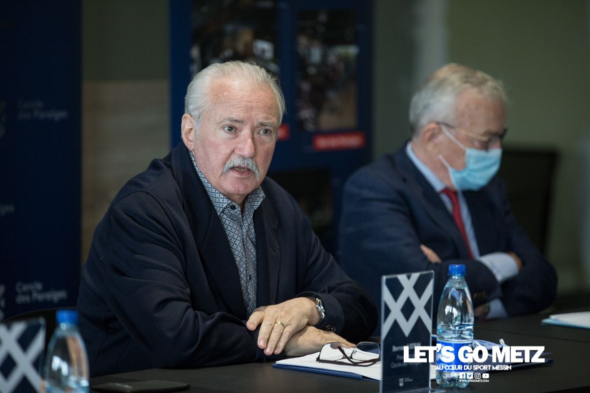 943 La tribune Sud, toujours en travaux, n’a pas fini de livrer tous ses secrets. Pourtant certains aspects de son utilisation hors jours de matchs commencent à se préciser et le président du FC Metz Bernard Serin présentait hier une nouvelle entité qui l’animera à l’année : le Cercle des Paraiges. Il y a quelques mois nous vous présentions le FC Metz Stadium, nouvelle identité de l’Immobilière Saint Symphorien dont les missions ont été remaniées pour accompagner la construction, l’entretien et l’exploitation de la nouvelle tribune et in fine, du stade tout entier. Hier à l’occasion d’une conférence de presse, Bernard Serin a précisé l’organisation de ce qui sera l’un des principaux pôles d’activités de Saint Symphorien : le Cercle des Paraiges. Un cercle d’affaire inspiré de la tradition anglo-saxonne qui devrait réunir à terme des entrepreneurs, le milieu associatif, des acteurs de la politique ou encore de la culture afin de favoriser la création de réseau, participer au rayonnement et aider les initiatives. Rien de bien séduisant pour les amoureux purs et durs du ballon rond mais une réelle avancée pour la vie et la rentabilité d’un stade couteux qui ne serait sans cela utilisé que 19 jours par an. Parmi les fondateurs de ce Cercle on retrouve bon nombre de personnalités bien connues. Outre Bernard et Nicolas Serin, quelques politiques avec Dominique Gros, Nathalie Griesbeck, Jean Marc Todeschini, Jean Jacques Aillagon, Jean Marie Rausch et Gérard Longuet ; des représentants des médias comme Carole Gaessler, Patrick Charles, Christophe Mahieu ; des représentants du monde du sport que sont Carlo Molinari et Robert Pirès ; ainsi que des industriels à l’image de Philippe Bard et Michel Wurth ou encore un chef étoilé en la personne de Michel Roth… Cette entité sera une exclusivité dans le Grand Est et pour cause, ce type de cercles n’existe à l’échelle Française qu’à Paris, Lyon et Bordeaux. A plus grande échelle, des jumelages sont prévus avec le cercle Munster au Luxembourg, le cercle Gaulois à Bruxelles et le cercle Saint James à Paris. Ainsi bien que l’ancrage soit bel et bien Messin, le rayonnement se veut plus large en s’ouvrant à la Meurthe et Moselle, la Meuse voir même aux potentiels membres venus de l’étranger.Attention, il s’agit avant tout d’un lieux d’affaires et l’accès en est limité par un comité d’intégration, un droit d’accès et une redevance annuelle. L’objectif étant d’équilibrer les membres en fonction de leurs domaines d’activité et leurs centres d’intérêts au sein du cercle. Où ça ? Cette activité siègera en plein cœur de la tribune Sud, au premier étage en lieu et place de la corbeille officielle des jours de matchs, desservie par le « boulevard des légendes » qui traverse l’ouvrage. Toujours en travaux de toutes parts, le lieu nécessitera encore beaucoup d’aménagements avant de recevoir son public mais les choses commencent à prendre forme. Le premier lustre design vient d’être posé tandis que l’immense escalier métallique attend d’être façonné. Les loges et salons de réception attenants ont reçu une partie de leur mobilier et la moquette se cache encore sous des protections en plastique. La vue sur le terrain est imprenable et le président Serin ne cache pas son espoir d’attirer des personnalités insensibles au football et de nourrir leur curiosité à l’aide de ce nouvel outil. A l’étage, des futures zones de réception exclusives au cercle offrent une vue plongeante sur la coursive en contrebas, qui se voudra modulable entre les jours de matchs et les périodes d’activité extra sportives. Non loin, une très grande cuisine est quasiment prête à l’utilisation, le mobilier chromé ne souffre d’aucune imperfection si ce n’est la poussière résiduelle des travaux aux alentours, cet attirail servira à nourrir les membres du Cercle au quotidien sans oublier des perspectives de privatisation pour des évènements spécifiques. A l’arrière les grandes baies vitrées donnent une vue imprenable sur le parvis de la tribune, à deux pas des courts de tennis du club des Paraiges.Malgré les outils et matériaux entreposés ça et là, on distingue de plus en plus clairement l’utilité finale des différents espaces et la qualité de l’outil dont s’est doté le FC Metz. Galerie Crédit photo : Matthieu Henkinet (logo LGM), FC Metz Stadium