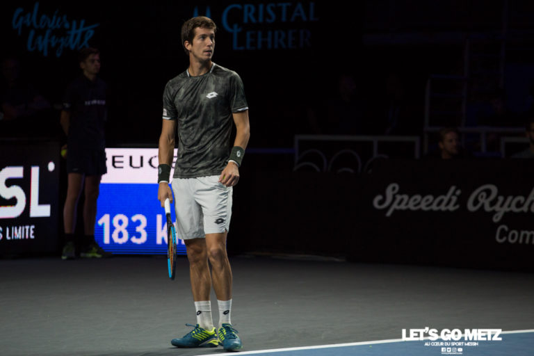 426 Alors qu’il luttait contre la maladie depuis plusieurs jours, Benoît Paire n’avait plus assez d’énergie pour montrer son meilleur jeu aujourd’hui face au Slovène Aljaz Bedene. Après un premier set encourageant, dans la veine de ce qu’il avait pu montrer hier face à Gregoire Barrere, remporté 4-6. Le Français à craqué dans le deuxième set en ne remportant qu’un seul jeu: 6-1. Avec quelques coups de sang qui le caractérisent au long du match, envers son adversaire et l’arbitre, il n’est jamais parvenu à revenir pleinement dans le jeu. Son match est toutefois marqué par quelques coups remarquables, témoins d’un talent bien présent dans un jeu trop peu stable pour espérer s’imposer aujourd’hui. Le troisième set est quasiment anecdotique et lâché 6-2. De son côté Aljaz Bedene a bien saisi les occasions qui se présentaient à lui et ne s’est pas laissé déstabiliser par les coups de pression adverse. Concentré, il a fait régner son jeu dans les deuxième et troisième sets avec une belle régularité, pour s’offrir une victoire importante puisqu’il est le premier finaliste du Moselle Open 2019. Il affrontera le gagnant de la demi finale franco-française qui va suivre: Lucas Pouille contre Jo Wilfried Tsonga. Crédit photo: Matthieu Henkinet (images issues des matchs du 20 Septembre)