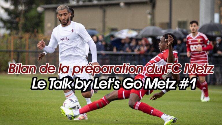 831 Let’s Go Metz lance son podcast « Le Talk by Let’s Go Metz » et dresse le bilan de la préparation du FC Metz dans ce premier épisode disponible sur Spotify et YouTube. Comme à chaque début de saison, Let’s Go Metz se renouvelle pour trouver sans cesse de nouvelles manières de vous informer. Cette année, l’équipe va vous proposer un podcast dans lequel elle débriefera l’actualité des équipes sportives messines. Et mercato oblige, le premier épisode du Talk by Let’s go Metz sera consacré au FC Metz et au bilan de la préparation du club à la Croix de Lorraine. Au programme de ce premier épisode du nouveau podcast « Le Talk by Let’s Go Metz », les chroniqueurs débattent ensemble de l’actualité du club à la Croix de Lorraine, notamment le bilan de la préparation et du mercato grenat. Le podcast sera enrichi au fur et à mesure de la saison, notamment avec un suivi de Metz Handball. Au programme de ce premier épisode : Le bilan du mercato Une revue de l’effectif ligne par ligne Le bilan de la préparation Les craintes et les espoirs des chroniqueurs pour la saison à venir Rennes – Metz, avec un focus sur la préparation et le mercato du premier adversaire des Grenats Le Talk by Let’s Go Metz disponible sur YouTube Crédit photo et miniature : Julien Buret / Let’s Go MetzMontage et présentation : Gérald RusselloChroniqueurs : Mehdi Abirez, Arthur Carmier et Valentin Lachaux