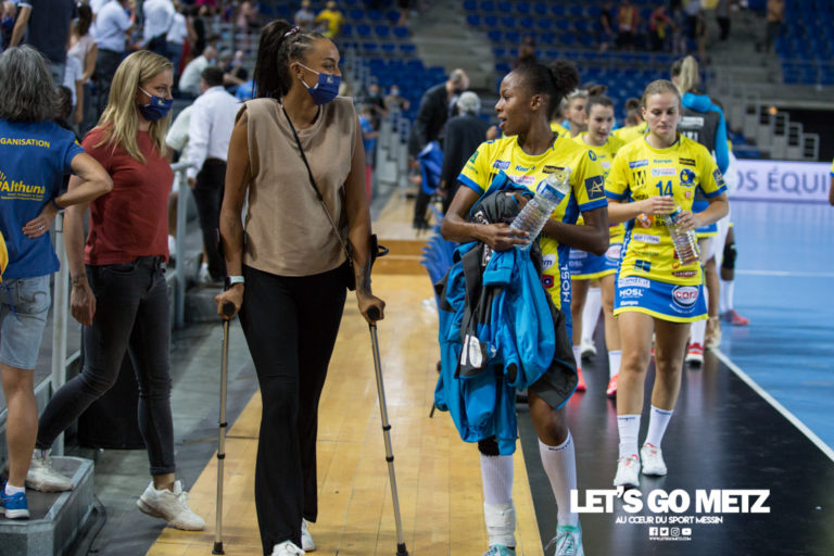 458 Alors que la saison ne fait que commencer, ce n’est certainement pas le chemin que souhaitait prendre la jeune arrière droite. Pourtant, il faudra prendre son mal en patience : une blessure au ménisque contractée lors du match face à Nantes requiert une opération. Nous avons eu la désagréable surprise de la voir en tribune, béquilles en main, lors du match des Dragonnes face à Bietigheim. Naturellement déçue de devoir délaisser ses coéquipières du terrain pour rejoindre les tribunes aux côtés de Manon Houette, elle nous confiait alors avoir endommagé son ménisque lors de la rencontre face à Nantes en Ligue Butagaz Énergie. Un diagnostic confirmé par le président et médecin du club, Thierry Weizman, dans les colonnes du Républicain Lorrain aujourd’hui.La spécialiste des jets de 7 mètres devra donc passer par la case opération dès ce Lundi, en espérant une reprise sous six semaines.Il s’agit bien sur d’une mauvaise nouvelle pour l’effectif Messin, qui est engagé dans un calendrier difficile, entre championnat et ligue des champions, qui ne laisse que peu de place à l’erreur.