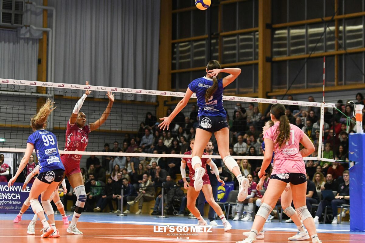 52 Le TFOC se déplace à Bordeaux ce samedi pour le dernier match de saison régulière. Pour cette dernière journée, le suspense reste entier. Terville Florange peut terminer 8ᵉ, 9ᵉ ou 10ᵉ au coup de sifflet final en fonction de son résultat et de celui de Saint-Dié. Un classement qui déterminera le duel pour les play-ins. À quelle place termineront les joueuses de Romain Pitou en championnat ? C’est toute la question de la 26ᵉ et dernière journée de Saforelle Power 6. Et le TFOC conclut la phase régulière comme il l’a commencée face à Bordeaux avec un coup d’envoi à 16h, comme sur tous les terrains. Cette fois-ci, les Bleues se rendent en Gironde pour tenter de prendre leur revanche sur le match aller et enchaîner une quatrième victoire de suite. Ce serait une première cette saison. Mais un succès pourrait surtout bouleverser la hiérarchie au classement. Le TFOC conserve en partie son destin Parce que les enjeux sont importants sur ce match. Terville Florange peut aussi bien terminer 8ᵉ que conserver sa 9ᵉ place, ou perdre une position. C’est donc un duel à distance qui s’annonce entre les Mosellanes et Saint-Dié, juste derrière au classement. Après avoir récupéré leurs cinq points de pénalité qu’elles peuvent encore se voir retirer, les Vosgiennes restent toujours dans la course à la 8ᵉ place. Mais elles reçoivent Mulhouse ce samedi, la meilleure équipe cette saison qui a connu une seule défaite. Autant dire que les chances de victoire sont minces pour les joueuses d’Emmanuel Dumortier. Le TFOC garde alors en grande partie son destin entre ses mains. En cas de succès à Bordeaux ou d’une défaite en cinq sets, les Bleues dépasseront forcément Chamalières, exempt de cette dernière journée, et termineront 8ᵉ. Par contre, si Terville Florange venait à perdre sans prendre de points, il pourrait retomber à la 10ᵉ place en cas de succès des Vosgiennes. Grace Chillingworth face à Béziers. © Mikaël Frank – Let’s Go Metz Quel adversaire en play-in ? L’autre question qui se pose, c’est qui affrontera les joueuses de Romain Pitou en play-in ? Et là encore, le suspense reste entier. Bordeaux, Chamalières et Saint-Dié, voici les trois adversaires qu’elles pourraient retrouver. Les Bordelaises en cas de 10ᵉ place, et les deux autres en cas de 8ᵉ ou 9ᵉ position. Tout dépendra des résultats ce week-end. Pour le TFOC, les meilleures options semblent être la 8ᵉ et la 9ᵉ place pour éviter Mulhouse et jouer soit contre Vandœuvre ou Levallois Paris en cas de qualification pour les play-offs. Crédit photo : Mikaël Frank – Let’s Go Metz.