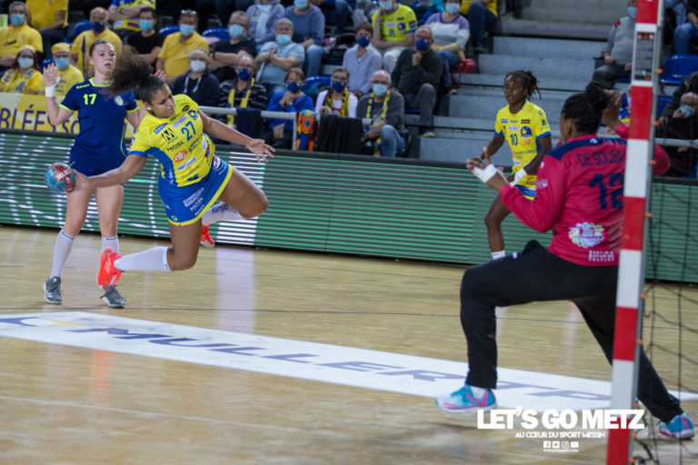 625 La jeune pivot formée au centre de formation Messin rejoint immédiatement les panthères de Fleury pour y vivre le reste de la saison 2020/2021. Alors qu’elle vient de signer son premier contrat professionnel avec le Metz Handball, Sarah Bouktit prend déjà son envol vers une autre équipe, celle du Fleury Loiret Handball, où elle disputera la fin de la saison. Il s’agit d’un prêt dans le cadre du remplacement de Laura Kamdop qui s’est blessée récemment, au terme de ce prêt la pivot messine devrait retrouver l’effectif jaune et bleu. Utilisée à plusieurs reprises ces deux dernières saisons pour renforcer les Dragonnes lors d’indisponibilités à son poste aussi bien en Ligue Butagaz Énergie qu’en Champions League, Sarah Bouktit présente des qualités indéniables et saura sans nul doute, du haut de ses 18 ans, profiter au maximum de l’expérience qui lui est proposée pour développer son jeu.Cela pourrait d’ailleurs être un point à observer aux Arènes lors de la 17ème journée de championnat où un match entre les Dragonnes et les Panthères est planifié… Source de l’information : HandfactsCrédit photo : Matthieu Henkinet