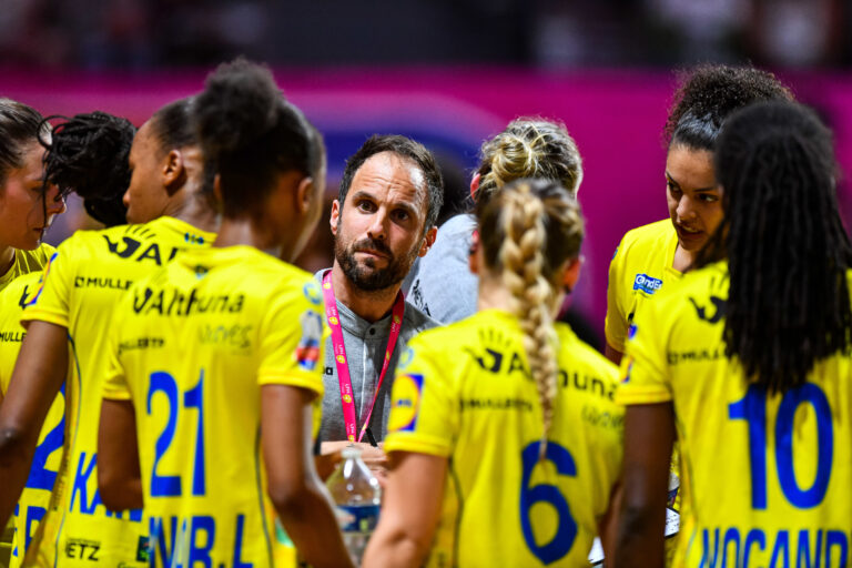 373 Surpris à Brest, Metz Handball s’incline en finale aller de LBE (26-24). Une réaction est attendue aux Arènes pour ne pas laisser filer le titre de championnat, tant convoité. A l’inverse de la saison passée, Metz abordait cette finale de LBE en tant que favoris alors que Brest était l’outsider de cette double confrontation. D’autant plus lorsque le rapport de force entre les deux effectifs présents paraissait très déséquilibré par l’absence de plusieurs Brestoises. Néanmoins, après deux rencontres en totale domination, un effectif brestois courageux et solidaire avait décidé de repousser le groupe d’Emmanuel Mayonnade dans ses retranchements. Les Messines retrouvaient donc leur bête noire, le temps d’une soirée. Grace Zaadi avait prévenu, les Brestoises arrivaient avec l’envie d’effacer leur précédent non-match face aux Messines. Une première période à deux visages Pourtant Metz avait rapidement pris la température de cette finale aller de LBE face à Brest. De par quelques maladresses brestoises déclenchées par la défense messine, le leader du championnat en profitait pour faire un mini-break dès le début de la rencontre. Le collectif de Pablo Morel ne reculait pas mais la justesse messine trouvait de nouvelles solutions à chaque fin d’action. La vitesse d’engagement de Méline Nocandy et de Louise Burgaard trompait facilement la défense adverse. Bien impuissante, Sandra Toft ne parvenait pas à sauver ses troupes des assauts lorrains. Metz Handball préservait alors un petit écart de 2-3 buts d’avance pendant presque 26 minutes, malgré l’absence de la capitaine messine, sortie sur blessure avant le 1/4 d’heure du match (11-14, 25’50). Toutefois, la machine bien huilée commençait à dérailler juste avant la pause. Par ailleurs, la verve de la suédoise Jenny Carlson accrochait le wagon brestois à la locomotive messine pendant qu’elle possédait un ballon de +4. Les Finistériennes grignotaient l’avance d’un Metz Handball qui perdait des balles et concédait des fautes défensives à répétition. La dynamique basculait définitivement avec l’égalisation de Coralie Lassource, très inspirée face à Ivana Kapitanovic (14-14, 30′). Une agressivité moins présente, Agathe Quiniou impressionnante Au retour des vestiaires tout était à recommencer pour l’équipe messine. Le but de Orlane Kanor aurait pu relancer la turbine mais un véritable mano à mano… d’erreurs offensives s’ensuivaient de part et d’autre du terrain. C’est finalement Brest qui prenait les devants après une énième confusion de Metz. En se précipitant, les Messines ne gagnaient plus aucun duel et se heurtaient sur la défense brestoise. Et comme si cela ne suffisait pas, la jeune Agathe Quiniou les mettaient en échec, notamment sur les ailes beaucoup moins en réussite (18-16, 37’41). Menés de +2 pour la première fois de la partie, Emmanuel Mayonnade se voyait contraint de poser un temps-mort mais rien n’y faisait, les Dragonnes manquaient toujours de répondant devant les filets brestois. De surcroît, la défense était moins incisive et se rendait souvent coupable de gestes défensifs maladroits. Cela les empêchait de s’illustrer sur attaque rapide, habituel point fort. Ce temps faible aidait Brest à creuser l’écart avec plusieurs ballons de +3. Juste avant les dix dernières minutes, Constance Mauny ou Sladjana Pop-Lazic ne manquaient d’ailleurs pas cette occasion (21-18, 46’04). En dépit de ce manque d’impact, la profondeur du banc maintenait l’équipe au contact alors que Brest, de plus en plus héroïque, résistait par sa débauche d’énergie. Mais Metz Handball limitait les dégâts par le prisme de Debbie Bont qui concluait cette partie avec un lob bien senti (26-24, 60′). Encore en vie mais… Après 26 victoires en 26 rencontres, Metz Handball tombe pour la première fois face à un Brest Bretagne Handball galvanisé par la solidarité mais aussi par l’enjeu d’un dernier match à domicile. Si rien n’est encore joué avec cet écart peu conséquent, ce jeune groupe messin se retrouve avec un ballottage défavorable inédit qu’il faudra apprendre à gérer. Sans Méline Nocandy ? Les statistiques de la rencontre Brest Bretagne Handball Quiniou (8 parades sur 17 tirs), Toft (4/19)Mauny (3 buts sur 4 tirs), Toublanc (6/6), Fauske, Kromoska, Lassource (3/5), Pop-Lazic (3/3), Foppa (1/1), Loseth (4/8), Carlson (5/9), Coatanea (1/3), Jarrige. Metz Handball Kapitanovic (9 parades sur 30 tirs), Halter (1/6)De Paula (1 but / 5 tirs), Valentini (2/3), Zaadi (2/3), N’Gouan (2/5), Nocandy (2/2), Tamara Horacek (2/3), Bont (3/4), O. Kanor (3/5), Burgaard (5/8), L. Kanor (1/1), Bouktit (1/1), Cardoso (0/2). Crédit photo : Baptiste Fernandez/Icon Sport