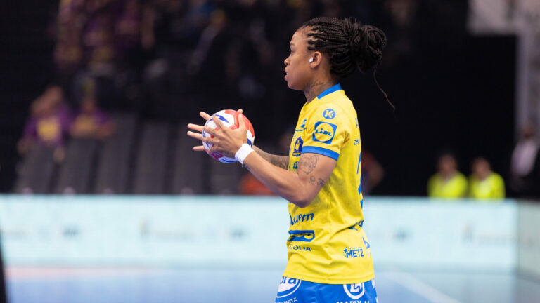 611 Bruna de Paula, la capitaine de Metz Handball, jouait son dernier match en jaune et bleu lors de la victoire en Coupe de France. Réaction. Cette médaille c’est un beau cadeau pour terminer ton aventure à Metz Handball !Oui bien sûr, comme j’ai dit aux filles, on méritait de finir sur une belle note après tout ce qu’on a vécu au fil de la saison. C’est la meilleure façon de se dire « au revoir ». C’était une finale presque parfaite, dominée dès le début et jusqu’au bout malgré les tentatives de retour parisiennes.Pour moi une finale parfaite c’est quand tu la gagnes. Dès le début on voulait montrer qu’on était là pour ça. On a eu une bonne défense et ça a payé. Est-ce que la déception de l’élimination en quart de finale de Champions League vous a donné ce sentiment supplémentaire de devoir assurer jusqu’au bout et ne laisser aucune miette.Oui, dès les entrainements après l’élimination on a eu la volonté de rebondir. On est comme ça. On voulait cette belle fin de saison. C’est la première fois que Metz Handball fait le doublé Championnat / Coupe deux saisons de suite… Il y a de la fierté ?C’est certain, on rentre dans l’histoire du club et ça fait toujours plaisir, surtout pour ce club là. Quel va être le programme désormais ? Il va falloir fêter !Il va y avoir les vacances. On va se reposer, profiter de la famille… Propos recueillis par Arthur Carmier et Julien BuretCrédit photo : Julien Buret / Let’s Go Metz