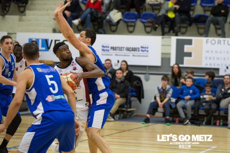 358 Hier soir au complexe Saint Symphorien, se jouait un match capital pour les canonniers de Metz dans le cadre de la 17ème journée de Nationale 2, face au Vogesia Holtzheim. Un match clé au classement face à des Alsaciens qui comptaient seulement 2 petits points de plus que les messins. Bien que les Canonniers doivent faire face à un début d’année 2020 compliqué, nous pouvons noter ce soir le retour d’Etienne Ory, Mamedy Diawara et Gabriel Kossi Kidi dans le groupe. En revanche Patrice Mbianda victime d’une déchirure musculaire lors du dernier match, est en civil. Avec une seule défaite à domicile cette saison, ce match semble être l’occasion parfaite de prolonger une belle série face à un adversaire de prestige. Holtzheim, accroché par deux fois depuis le début d’année a montré des signes de faiblesses, mais il ne faut jamais sous estimer une bête blessée, l’ambition est claire ce soir : faire tomber les grenats chez eux. Le 5 majeur : 1er quart temps : C’est Holtzheim qui lance les débats avec d’entrée une grosse présence en défense et de l’habileté dans les shoots, 5-0 en une minute. Mais Michel N’Simba enflamme les gradins à deux reprises, d’abord sur un dunk rageur suite à une passe aveugle de Henok Affa, puis sur une claquette lors d’un tir manqué. Le spectacle est au rendez-vous d’entrée ce soir et les visiteurs ont toutes les peines du monde à trouver la solution sous la raquette. Matthew Lee ouvre son compteur à 3 points et met les siens devant au score. 10-8 pour les messins alors qu’il reste moins de 4 minutes dans ce premier acte très disputé. Le staff grenat en profite pour procéder aux premières rotations, David Sainsbury Garcia et Etienne Ory entrent en jeu en lieu et place de Mahamadou Doucoure et Damien Jean Joseph. Rabbi Gabriel Kosi Kidi et Mamedy Diawara remplacent ensuite Henok Affa et Michel Nsimba. Les alsaciens ne se laissent pas tromper par ces ajustements et restent au contact. Etienne Ory, sur une de ses premières balles est forcé de tenter un shoot impossible au buzzer… ça rentre ! Cette entame de match plutôt convaincante est malheureusement entachée par la blessure à la cheville gauche de Matthew Lee, meilleur scoreur de l’équipe cette saison, contraint de rester sur le banc.David Sainsbury Garcia se montre précieux au rebond offensif et Mamedy Diawara en bon capitaine montre le chemin avec un shoot à 3 points qui fait du bien. Gabriel Kosi Kidi aggrave le score sur une passe lumineuse d’Etienne Ory, encore lui. Le niveau est clairement au rendez-vous ce soir et les messins sortent le grand jeu 20-15. 2ème quart temps : Les Alsaciens sont régulièrement poussés à la faute par des Canonniers conquérants, mais alors que l’efficacité descend d’un cran de chaque côté, le match gagne en agressivité et les visiteurs reviennent au score à 21-21. Philippe Ory sent que c’est le moment de demander un temps mort pour réorganiser ses troupes. Les joueurs d’Holtzheim ont retrouvé leur adresse à 3 points, notamment par l’intermédiaire de Drazen Klanic qui redonne l’avantage aux visiteurs. Le public venu nombreux pousse ses protégés mais l’actuel 4ème du championnat n’est pas décidé à laisser les grenats les rattraper. Le score a basculé et les visiteurs mènent 23-30 à quelques minutes de la mi-temps et lors d’un nouveau temps mort les coach Messin ne semble pas mâcher ses mots.La rencontre tient toutes ses promesses, Holtzheim domine maintenant les débats mais les Canonniers ne lâchent rien. L’adresse à 3 points des visiteurs est tout bonnement insolente et fait très mal aux messins. L’écart se creuse malgré la combativité des Canonniers, mais leur manque de réussite et les trop nombreuses pertes de balle dans ce 2ème quart temps sont criants, si bien que le score à la pause est de 28-39. 3ème quart temps : En ce début de seconde mi temps, David Garcia Sainsbury prend ses responsabilités et enchaîne deux paniers de suite pour rester à 10 points des visiteurs. Etienne Ory est décisif à 3 points et réduit la marque 37-44. On sent les canonniers capables de revenir dans ce match malgré la réussite prolongée des visiteurs qui laisse pour le moment les Messins à distance. Henok Affa quant à lui manque d’efficacité aux lancers francs et rate l’occasion de réduire l’écart. Les Alsaciens sont beaucoup plus agressifs dans cette 2ème période et du côté Messin on se complique la vie avec des combinaisons mal exécutées. En face, le jeu est plus fluide.En fin de quart temps, Etienne Ory rentre un floater bien placé avant que Mamedy Diawara ne retrouve de la réussite sur un tir précieux en dehors du cercle. Cette réussite tardive permet aux Canonniers de rester dans la course. Le 3ème acte se termine sur le score de 49-58 après deux lancers francs de Damien Jean-Joseph. Tout est encore possible. 4ème quart temps : Le dernier acte a l’allure d’un duel à 3 points. Et à ce petit jeu les joueurs d’Holtzheim sont clairement supérieurs aux Messins. Malgré tout, à force de possessions valeureuses l’écart se réduit à 7 unités, 57-64. Les Canonniers sont héroïques ce soir et donnent tout ce qu’ils ont pour revenir dans la partie. Etienne Ory rentre un tir longue distance, effacé directement par l’attaque Alsacienne avant que Mamedy Diawara ne réponde immédiatement. Dans la foulée, Damien Jean Joseph réalise une feinte de passe magistrale pour aller déposer la balle dans le cercle. Showtime. Cette séquence de haut vol permet de réduire un peu plus l’écart au score : 60-64. L’ambiance monte d’un cran dans les tribunes et sur le parquet mais un coup de massue arrive vite, Etienne Ory est exclu de la partie après une 5ème faute, dans la foulée Damien Jean Joseph écope d’une faute technique avant que Philippe Ory ne soit exclu du banc par le corps arbitral.Et alors que les arbitres perden