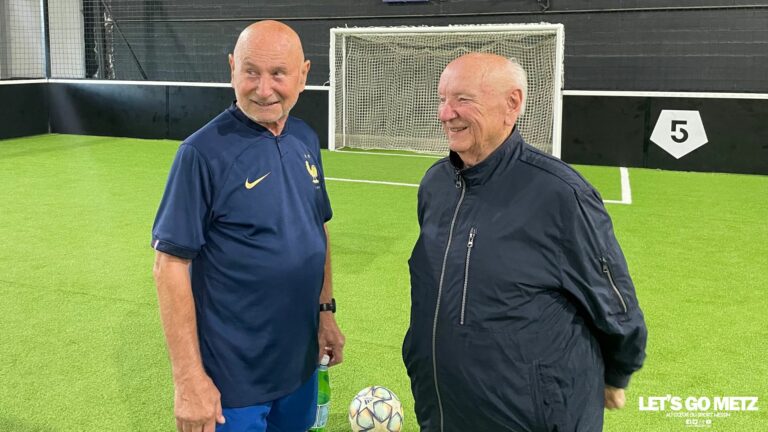 915 Autour du « carré magique », un dispositif d’entraînement modulaire et de rééducation, Carlo Molinari et Robert Szczepaniak se sont retrouvés à quelques heures du derby de l’Est entre le FC Metz et le RC Strasbourg Alsace. Robert Szczepaniak a porté le maillot du FC Metz (1967-1970) et celui du RC Strasbourg Alsace (1961-1967). À quelques jours du derby de l’Est, l’ancien Grenat présentait son « carré magique », un dispositif d’entraînement modulaire et de rééducation pour le footballeur, au Five de Moulins-lès-Metz. Si l’octogénaire enchaîne les gestes techniques comme un fringant jeune homme, de son propre aveu, « il ne faisait pas deux jongles il y a à peine deux ans ». C’est grâce à son « carré magique », outil qui permet de « lier physique et technique », que l’ancien international français (5 sélections) a retrouvé sa motricité. Pourquoi cette référence évidente à Tigana, Giresse, Platini et Fernandez ? Car le « carré magique » est un symbole de l’équilibre des Bleus dans les années 80. Carlo Molinari : « Robert Szczepaniak a marqué mon début de carrière » Autour du « carré magique », Carlo Molinari a tenu a rendre visite à son ancien poulain, ce vendredi au Five de Moulins-lès-Metz. L’ancien président emblématique du FC Metz n’est jamais avare d’anecdotes quand il s’agit de l’histoire du club. « Robert est un homme extraordinaire, encore passionné de football à son âge. C’est un joueur qui a marqué mon début de carrière. À l’époque, j’avais recruté Robert à Strasbourg alors que ses genoux étaient en mauvais état. Huit mois après, il est en Équipe de France ! », se remémore Carlo Molinari, qui avait flairé le bon coup… Les deux hommes ont bien évidemment échangé sur le FC Metz, qui réussit des débuts probants en Ligue 1. « Je suis le FC Metz en permanence, je fais partie des anciens de Metz mais aussi de Strasbourg. Quand je suis à Metz, je suis pour le FC Metz », sourit Robert Szczepaniak. L’avis du président d’honneur du FC Metz est, bien sûr, plus tranché. « Les garçons sont montés en puissance, on est satisfait d’avoir 8 points. Je tire mon chapeau à Laszlo Bölöni. Je pense que dans le contexte actuel, avec une équipe prête sur le plan moral, ça peut le faire contre Strasbourg », glisse Carlo Molinari. Crédit photo : Arthur Carmier / Let’s Go Metz