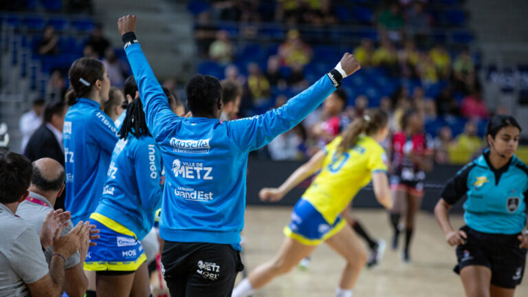 798 Ce mercredi 27 septembre, Metz Handball se déplaçait à Chambray pour affronter les Conquérantes lors de la 5ème journée de Ligue Butagaz Energie. Nous avions quitté les Dragonnes en bien mauvaise posture. Défaites sur le terrain d’Esbjerg, les protégées d’Emmanuel Mayonnade venaient d’encaisser leur deuxième défaite de rang dans la compétition reine. A cours d’idées et d’efficacité lors de cette rencontre, les coéquipières de Chloé Valentini devaient donc profiter de leur retour en championnat de France pour se refaire une santé avant la réception de Lubin.Face à une équipe de Chambray, privée de Manon Houette, les choses ont souri aux visiteuses d’entrée de jeu. Avec une solide avance de 5 buts au quart d’heure de jeu, Metz Handball se montrait sous son plus beau visage (5 – 10, 15ème). Camille Depuiset, de retour après deux matchs sur le banc, s’illustrait devants ses cages et offrait à ses coéquipières des occasions de creuser davantage l’écart. Lucie Modenel, Laurie Pulleri et Agathe Quiniou parvenaient à limiter la casse côté chambraisien tandis qu’Alina Grijseels, Emma Jacques, Anne Mette Hansen ou encore Mia Brkic sortaient du banc (8 – 13, 24ème). La fin de mi-temps se muait en bras de fer des gardiennes et Metz Handball ne parvenait qu’à ajouter un but à son avance.Score à la mi-temps : 10 – 16 Après la pause, les messines remettaient un coup d’accélérateur et après seulement 4 minutes le lob de Chloé Valentini offrait un +9 à son équipe (10 – 19, 34ème). Lucie Granier aggravait la marque une minute plus tard et Mathieu Lanfranchi posait son temps mort. Agathe Quiniou, décisive en première mi-temps pour garder la tête des siennes hors de l’eau ne pouvait plus rien face aux tirs ouverts trouvés par les Dragonnes. Emmanuel Mayonnade profitait de la domination des siennes pour changer le visage de son équipe avec les entrées de Julie le Blevec et Zaliata Mlamali ainsi que le retour de plusieurs joueuses depuis le banc (15 – 28, 45ème). Camille Depuiset, décidément sur un nuage, profitait d’une parade sur jet de 7 mètres pour répondre aux chants des supporters avec un chambrage bien à elle. Mia Brkic en profitait sur l’attaque suivante pour inscrire le trentième but messin (17 – 30, 49ème). Au gré des changements, Chambray semblait en mesure de combler une partie de son retard mais Alina Grijseels, Emma Jacques, Julie le Blevec et Djazz Chambertin s’assuraient de tenir la marque jusqu’au coup de sifflet final. Score final de ce Chambray – Metz Handball : 22 – 36 Cette victoire sans partage face à Chambray confirme la position de leader de Metz Handball dans le championnat de France et devrait redonner confiance à une équipe qui en avait grandement besoin. Prochaine échéance, aux Arènes ce samedi à 18h, face à Lubin en Champions League. Les stats de la rencontre Metz HandballDepuiset (22 parades sur 43 tirs), Sako (0/1)Grijseels (1 but sur 2 tirs), Valentini (8/11), Hansen (2/4), Jorgensen (4/6), Brkic (1/2), Burgaard (1/1), Mlamali (1/1), Jacques (3/5), Bouktit (7/9), Granier (3/4), Chambertin (2/3), Le Blevec (2/3). ChambrayQuiniou (12 parades sur 44 tirs), PerchePina (0 but sur 1 tir), Danielsson (1/2), Ebara-Manginot (3/3), Modenel (2/8), Van der Heijden (1/4), Puleri (5/11), Morvan (1/2), Sow (3/3), Offendal (4/11), Le Doux, Deba (1/4), Mwadi Kabamba (1/3). Crédit photo : Matthieu Henkinet (archives)