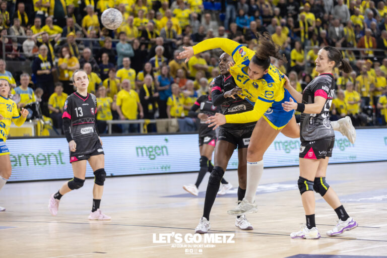 680 Après sa victoire face à Brest (23-22), Metz Handball défie Gloria Bistrita ce samedi (16 h) pour valider la première place de la poule. Les vertus mentales et physiques du groupe messin seront à nouveau testées car ce déplacement ne s’est pas déroulé de manière optimale. À première vue, tout va pour le mieux et tous les voyants sont au vert pour Metz Handball. Vingt-cinq matchs sans défaite, treize victoires en autant de rencontres, dont la dernière acquise de haute lutte, ce mercredi face au rival brestois, dans des Arènes enivrées par le scénario, une première place en Ligue Butagaz Energie tout comme en Champions League et cinq joueuses sélectionnées en équipe de France pour le prochain rassemblement. Oui mais voilà, en sport, le succès est éphémère et il faut tout de suite se projeter sur les prochaines échéances sans se laisser griser. Gloria Bistrita, qui a encore une chance d’accéder aux play-offs, mettra sans nul doute tout en œuvre pour contrarier les ambitions messines. Et, s’il en était besoin, le destin s’en est mêlé et a décidé de tester les capacités de résilience et de rebond de la délégation mosellane. Un voyage compliqué Bien qu’Emmanuel Mayonnade soit réputé pour tout anticiper et ne pas subir les évènements, cette fois, le technicien doit composer avec plusieurs éléments contrariants. Tout d’abord, comme il l’indiquait en conférence de presse à l’issue du succès de ses joueuses, le déplacement en Roumanie pour y disputer l’avant dernière journée de Champions League face au Gloria Bistrita ce samedi (16 heures) ne s’est pas déroulé dans des conditions idéales. La faute à la suppression des vols au départ de l’aéroport de Charleroi qui a obligé l’aréopage messin à revoir ses plans dans l’urgence. La délégation a dû se scinder en deux groupes et s’est rendue en Roumanie via Stuttgart et Bâle puisqu’aucun avion n’était disposé à les faire voyager ensemble. Des contraintes de déplacement et de la fatigue, ajoutées à un calendrier déjà bien chargé pour les championnes de France qui ne peuvent également pas faire appel à toutes leurs forces vives. Metz Handball sans ailière gauche de métier à Bistrita Si les Dragonnes ont finalement pu compter sur leur capitaine, Chloé Valentini, face à Brest, ce ne sera pas le cas en Roumanie. Son retour fut anticipé pour pallier au forfait de dernière minute de sa binôme, Zaliata Mlamali, pour raisons personnelles. Mais sa présence avait également pour but d’apporter du poids au collectif, eu égard à l’importance de la rencontre. Elle semble avoir été prématurée. En effet, si les lobs millimétrés dont elle a le secret ont enchanté le public des Arènes et ses quatre buts en sept tentatives se sont avérés précieux, sa cuisse n’a pu résister à l’intensité d’un tel combat qu’un peu moins de trois quarts d’heure. Sachant que les matchs vont s’enchainer tous les trois jours, il est sans doute prudent de la laisser se reposer. Et ce, même si sa doublure sera à nouveau absente ce samedi. Mais, même si le match aller avait été indécis, les trois points d’avance que compte Metz Handball sur FTC en vue de la première place du groupe lui laissent une marge de manœuvre. En cas de faux pas, il restera la réception de Storhamar une semaine plus tard pour la valider. Mais connaissant l’appétit de ce groupe, il y a fort à parier qu’il va mettre tous les ingrédients pour poursuivre sa formidable séries de victoires. Crédit photo : Matthieu Henkinet/Let’s Go Metz