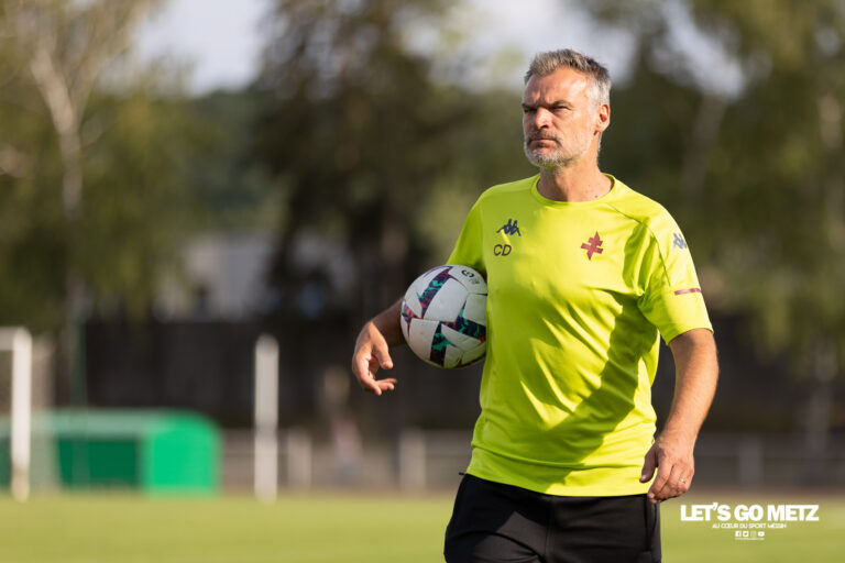 530 A deux jours du premier match de Ligue 2 du FC Metz, à domicile contre Amiens, Christophe Delmotte s’est exprimé devant la presse. L’adjoint de Laszlo Boloni a évoqué avec sourire et décontraction la présaison des Grenats, avant que les choses sérieuses ne commencent ce samedi. En l’absence de Laszlo Boloni qui a contracté le Covid – mais qui devrait être remis pour la réception d’Amiens – c’est Christophe Delmotte qui s’est adressé à la presse. A l’occasion de la traditionnelle conférence d’avant match, l’adjoint du technicien a évoqué son arrivée au FC Metz. « J’ai eu cette chance de travailler avec Laszlo à Lens, j’ai adoré ! Sa personnalité, sa façon de coacher, sa méthode de travail, son mangement avec les joueurs… Il a un parcours qui est vraiment remarquable. Je connaissais bien Pierre (Dréossi) aussi. Quand je jouais à Cannes, c’était l’adjoint de Safet Susic. En arrivant ici, j’ai découvert des infrastructures incroyables. Il y a quelque chose à faire au FC Metz. Il y a un vrai projet, ça me plaît. », explique Christophe Delmotte.Avant de retrouver Laszlo Boloni cet été, Christophe Delmotte était aux commandes du VAFC. Malgré une saison compliquée, le club était parvenu à se sauver en Ligue 2. Il pourra livrer son expérience de l’antichambre de l’élite française à son nouveau club. « Nous avons connu 6-7 mois difficiles. Les joueurs et le staff ont réussi à sauver le club. On sait que c’est un championnat relevé avec de belles équipes. On commence samedi, on est impatients de montrer le meilleur visage du FC Metz. Connaissant Philippe (Hinschberger), je suis sûr qu’il voudra bien faire à Saint-Symphorien », sourit l’adjoint de Laszlo Boloni. Le FC Metz peut compter sur des « fondamentaux » Si le FC Metz n’est sans doute pas au point à 100%, les Grenats peuvent s’appuyer sur des bases solides entrevues lors des matchs amicaux, notamment le 4-4-2 qui se dégage. « Il y a déjà des fondamentaux sur lesquels on peut s’appuyer. Notamment sur l’animation défensive ou les circuits offensifs, où des choses ont déjà bien avancé (…) Le coach affectionne ce système, on a les joueurs pour l’animer. On a eu pas mal de satisfactions. Le duo Niane – Mikautadze ? Ils ont fait des performances intéressantes. Il y a cette volonté de se chercher, de jouer pour l’autre, qui est intéressante. Ablie Jallow et Lamine Gueye ont également été intéressants contre Sochaux. », assure le technicien.L’entraîneur adjoint du FC Metz est conscient que la remontée passera par de bonnes performances à Saint-Symphorien et la conquête du public. « Pour l’avoir vécu avec Lens, on savait que pour remonter il fallait prendre beaucoup de points à domicile, c’est un premier challenge à relever. Contre Sochaux, on a déjà senti un public qui commençait à pousser, malgré la petite affluence. A nous d’amener le public avec nous par notre comportement, nos courses, notre envie… », raconte Christophe Delmotte.Le FC Metz évoluera ce samedi sans Habib Maïga ni Fabien Centonze, qui reprennent l’entraînement collectif la semaine prochaine. Kévin N’Doram serait lui attendu dans 10 jours. Cheikh Sabaly sera lui absent 2 à 3 semaines (ligament latéral interne), tandis qu’Ousmane Ba est en phase de reprise. La récente recrue Ismaël Traoré, qui se remet du Covid, est encore juste pour la première journée de Ligue 2, tout comme l’ancien capitaine courage messin Dylan Bronn. Crédit photo : Julien Buret/LGM