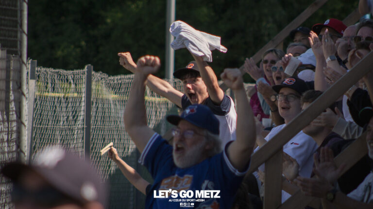 981 Au terme d’un week-end parfaitement négocié, l’équipe 18U (18 ans et moins) des Cometz a remporté la Poule B de la Coupe de France. Trois matchs, trois victoires, et une qualification pour le Final 4 à Chartres les 11 et 12 octobre. La saison a été rude pour les Cometz, avec la relégation de l’équipe fanion du club en deuxième division. Mais ce week-end, l’attention était portée sur l’équipe 18U, qui vise un premier titre de champion de France. Au Cometz Field, la jeune garde messine disputait la phase préliminaire de la Coupe de France de la catégorie. Sur le papier, la poule B semblait être la plus relevée des quatre : Metz, Colmar/Lunéville, Savigny, Sénart. Un parcours parfait Il est rare qu’un week-end se déroule exactement comme prévu. Pourtant, le parcours des Cometz 18U dans la phase préliminaire de la Coupe de France a été l’histoire d’un plan de jeu parfaitement exécuté. Les Messins s’attendaient à un gros combat en ouverture face aux Lions de Savigny. Les Franciliens jouaient leur atout, en plaçant leur meilleur lanceur sur le monticule, auteur d’une saison solide en D1 Baseball. Le staff messin faisait de même, en confiant la balle à Hugo Py. Avec une performance stratosphérique, il guidait ses coéquipiers vers une première victoire (4-3). Le deuxième match présentait une physionomie différente. Les Cometz profitaient de la faiblesse du pitching de Sénart pour prendre le large rapidement. La rencontre finissait avec un score fleuve (19-7). En clôture du week-end, le duel opposant Metz à Colmar faisait office de finale. Le derby était le théâtre d’un gros spectacle, alimenté par la rivalité entre les deux équipes. La fougue et l’insouciance des Alsaciens se heurtaient au sang-froid des Messins. Malgré un effectif jeune avec plusieurs joueurs surclassés, les coéquipiers de Charles Frulloni faisaient preuve d’une grande maturité. Mis en confiance par la performance sereine de leur capitaine sur le monticule, ils répondaient aux provocations adverses par le jeu. Chaque opportunité était saisie, chaque erreur, sanctionnée. Résultat final : 5-1. Avec ces bons résultats, la saison s’étend encore un peu pour les Cometz. Le 11 et 12 octobre, c’est tout le club qui soutiendra les 18U lors du Final 4 à Chartres. Résultats Coupe de France 18UClassement Crédit photo (archives) : Léni Audin (Une) ; Stephan Weyrath / Let’s Go Metz