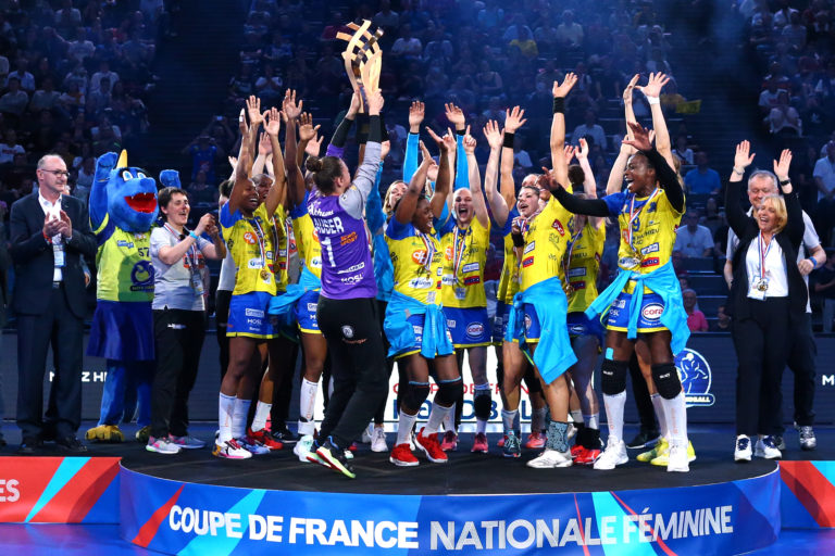312 Nous les avions quittées dans la joie et l’allégresse dans un Bercy comble, les Messines tenteront de graver leur nom sur le trophée pour la… 10ème fois de leur Histoire, le 16 mai 2020. Exempté des précédents tours, Metz Handball entrera en lice à partir des 8èmes de finale qui se dérouleront fin Février. Et le tirage n’a pas épargné le champion en titre puisqu’il se déplacera du côté de Toulon, un très bon client de la compétition (vainqueur et finaliste par deux fois), le 18 février prochain. Les Dragonnes auront fort à faire dans un calendrier ponctué de déplacements à Rostov le week-end du 21/23 Février et à Besançon, le 26 Février. Retrouvez le tirage intégral des 8èmes de finale : #CDF🏆 Le tableau des 8èmes de finale de la Coupe de France nationale féminine ! ➡ Rendez-vous les 22 et 23 février #VivezVibrezJouez pic.twitter.com/MfZxOjclJZ — FFHandball (@ffhandball) November 20, 2019 Crédit photo : Stéphane Pillaud/Sportissimo