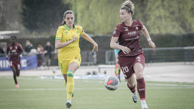 2,2K Après une longue trêve d’un mois, les joueuses du FC Metz reçoivent leurs homologues du FC Nantes en 1/16ème de Finale de la Coupe de France Féminine sur la pelouse du stade Dezavelle. Un choc haut en couleurs pour démarrer l’année 2025. On les avait quittées heureuses à l’issue de leur qualification sur la pelouse du Puy Foot 43, les Messines s’apprêtent à reprendre le chemin des terrains contre un gros client après un long mois de vacances. Sur la pelouse du stade Dezavelle, les joueuses du FC Metz affronteront leurs homologues du FC Nantes, ce dimanche à 13h15 et tenteront de se qualifier pour les ¼ de Finale de la Coupe de France Féminine. Un résultat qui tiendrait de l’exploit tant les dynamiques en championnat sont différentes pour les deux formations. D’un côté les Grenats, empêtrées dans le bas du classement de Seconde Ligue, de l’autre, les Canaris, solidement installées en milieu de tableau d’Arkema Première ligue. Deux parcours différents pour deux équipes qui évoluaient dans la même division la saison dernière. Un exploit possible ? Quoi de mieux pour reprendre le rythme avant des rendez-vous capitaux en championnat, qu’une réelle confrontation en Coupe de France ? Ce dimanche devant son public de Dezavelle, le FC Metz va pouvoir jauger son niveau face au FC Nantes. En dessous des espérances du début de saison sur le plan comptable, les protégées de Marine Morel gardent en outre un état d’esprit irréprochable et maintiennent le cap avant d’entamer la deuxième moitié de saison. Les Nantaises auront, quant à elles, certainement en tête leur défaite dix mois plus tôt face à des Messines qui n’avaient rien lâché et qui avaient offert à leur public une prestation XXL. Sans compter que les coéquipières de Lalia Storti auront également disputé une rencontre de championnat ce mercredi 08 janvier (victoire 2-1 face à Guingamp) et pourraient avoir les jambes lourdes avec seulement quatre jours de repos. L’occasion de créer l’exploit et de poursuivre l’aventure en Coupe est donc belle pour les féminines du club à la Croix de Lorraine. Coup d’envoi 13h15 – stade Dezavelle – Longeville-Les-Metz Crédit photos : Julien Buret – Let’s Go Metz