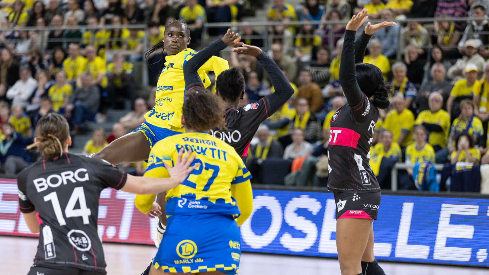 213 Le tirage au sort des demi-finales de la Coupe de France, effectué ce mercredi à 14h, a désigné l’adversaire de Metz Handball. Les Messines recevront Paris 92 pour une place en finale, le 4 avril. Metz Handball s’est qualifié pour le dernier carré de la Coupe de France après sa victoire en quart de finale face au Brest Bretagne Handball (37-35). Une rencontre accrochée, durant laquelle les Championnes de France ont fait la différence dans le money-time de la rencontre. Tenant du titre, le club lorrain enchaînera sa douzième demi-finale consécutive contre Paris 92 avec en ligne de mire un quatorzième succès qui permettrait à Metz d’égaler le record de Montpellier Handball*. Les Messines avaient remporté leur dernier titre face à la même équipe. L’autre demi-finale voit s’affronter Dijon et Chambray, deux équipes déjà croisées par Metz ces dernières saisons. Les Messines avaient affronté Chambray en demi-finale en 2022, puis Dijon en finale deux ans plus tard. Les joueuses d’Emmanuel Mayonnade devront donc passer le dernier finaliste pour espérer une nouvelle finale soit face à Dijon, soit face à Chambray. * Montpellier Handball est cependant toujours en lice pour une quinzième Coupe de France et doit disputer sa demi-finale contre le PSG, le 14 avril prochain. Crédit photo : Matthieu Henkinet/Let’s Go Metz