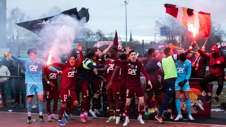 3,3K Opposé au FC Lorient en huitièmes de finale de Coupe Gambardella, le FC Metz s’est imposé un but à zéro et se qualifie pour la suite de la compétition. Après avoir vaincu l’Olympique Lyonnais et Bourg-en-Bresse au cours des tours précédents, les Messins recevaient le FC Lorient ce dimanche au stade Dezavelle. L’occasion pour les hommes d’Emmanuel Giudicelli de confirmer leur bon état de forme, eux qui restent sur quatre matchs sans défaites toutes compétitions confondues dont une large victoire en championnat, quatre buts à zéro, face à Pagny-sur-Moselle. Face à eux se dressait une solide formation bretonne, deuxième de la poule C en championnat U19 National et à seulement un petit point du leader, le FC Nantes. Une première période terne en occasions Lors des quarante-cinq premières minutes, le public, venu en nombre à Dezavelle, avait très peu l’occasion d’exprimer son soutien aux jeunes Grenats. En effet, l’essentiel des rares occasions messines comme lorientaises se faisaient par l’intermédiaire de coups de pieds arrêtés. Le premier moment chaud intervenait dès la troisième minute pour les Lorrains : sur un corner de Diego Duarte, Alessio Martinez reprenait le ballon de la tête mais sa reprise ne trouvait pas le cadre. Quelques minutes plus tard, les Merlus obtenaient un coup franc aux abords de la surface de réparation. Max Denis combinait avec Samir Haribou mais la reprise de l’attaquant breton n’inquiétait guère le portier messin. À la demi-heure de jeu, les hommes de Benjamin Genton étaient proches d’ouvrir le score. Or, la frappe de Bryan Le Gouic venait s’échouer sur le poteau de Luca Pausé. Le ballon revenait ensuite dans les pieds de Mohamed Sissako, mais la frappe de l’ailier lorientais était bien détournée par le portier grenat. La fin de la première période était dominée par l’équipe visiteuse mais, à quelques secondes de la pause, sur une passe de Diego Duarte, Alessio Martinez se retrouvait face à face au gardien breton… sans réussir son face-à-face. Un coup du sort favorable aux grenats La majorité de la seconde période était l’image de la première. Les Merlus dominaient dans le jeu et manquaient à plusieurs reprises de débloquer la situation. L’occasion la plus franche était à mettre au crédit du Lorientais Max Denis. Après une sortie hasardeuse de Luca Pausé, le milieu de terrain des Merlus interceptait le ballon avant d’armer une frappe somptueuse. Malheureusement pour lui, cette dernière venait heurter la barre transversale du portier messin. Cette occasion avait pour mérite de remobiliser les Grenats qui repartaient vers l’avant et, à la suite d’un centre de Mahi Gnemagnon, le ballon venait toucher la main d’un défenseur lorientais dans la surface de réparation. L’arbitre désignait sans hésiter le point de pénalty avant que Diego Duarte ne prît à contre-pied Leonardo Leveque (1-0, 77’). Après cela, les Bretons étaient incapables de relever la tête et les Lorrains proches de doubler la mise par l’intermédiaire de Gnemagnon. La réaction du coach du FC Metz, Emmanuel Giudicelli FC Metz 1 – 0 FC Lorient Mi-temps : 0-0.Arbitre : Mr. Hernandez.Affluence : Non communiquée. FC MetzPausé – Hare, Kokoro, Obongo, Marchal (Chams Dine 67′) – Gandziri, Mbala (Stegmann 90′), Martinez, Duarte – Gnemagnon , Mbemba. FC LorientLeveque – Siba, Monnier, Massee – Genton, Garnin, Le Gouic (Le Gal 76′), Denis – Haribou, Nanor (Betoubam 72′), Sissako (Diarra 78′) But pour Metz : Duarte (77e, SP).Avertissements à Metz : Gnemagnon (90e).Avertissements à Lorient : Monnier (56e), Genton (90e), Leveque (90e). Photo : Valentin Lachaux / Let’s Go Metz