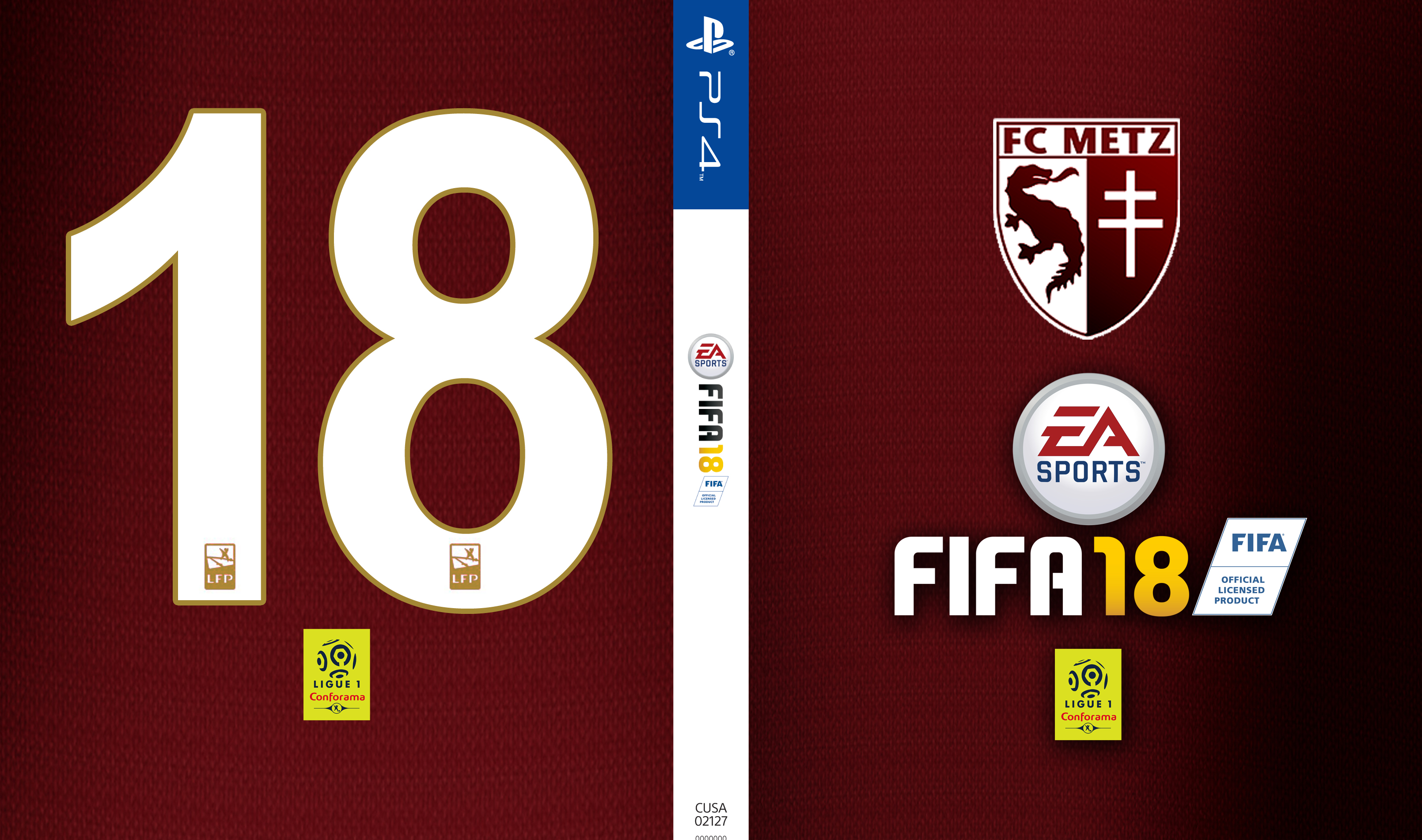 412 FIFA18 est là ! Vous ne voulez pas de Cristiano Ronaldo en couverture de votre jeu préféré ?! Grace à Let’s Go Metz, personnalisez votre jeu avec la couverture made in Grenat. Téléchargez simplement via le lien ci-dessus, imprimez, découpez et c’est parti ! Cliquez sur l’image correspondante à votre console (PS4 ou XBOX ONE) puis : en bas à droite, cliquez sur « Affichez dans sa taille réelle 3219 x 1902. » Clique droit sur l’image, « Enregistrez l’image sous… » puis enregistrer l’image dans le dossier dans lequel vous souhaitez voir figurer l’image. COUVERTURE PS4 : COUVERTURE XBOX ONE :
