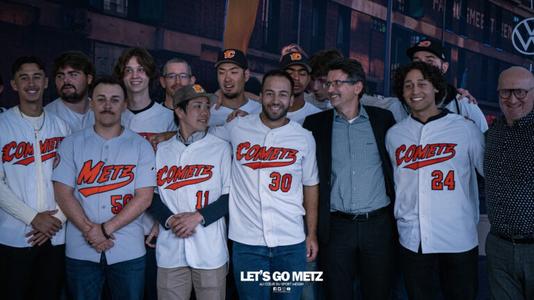 537 Les Cometz de Metz (D1 Baseball) présentaient leur effectif et les projets du club, ce jeudi à leurs partenaires privés et institutionnels. Explications avec le président David Ten Eyck. Le sponsoring est une étape obligatoire de la vie d’un club. A fortiori dans une structure associative comme les Cometz de Metz, qui a besoin de précieux partenariats pour faire évoluer ses projets. Des projets exposés par le président David Ten Eyck aux partenaires du club ce jeudi, à l’occasion d’une soirée de présentation de l’effectif de D1.Quelques jours après le début de la saison, Pierre Cézard et ses joueurs ont donc revêtu leur plus belle chemise, de match bien entendu, à l’occasion de cette soirée de présentation de l’effectif et des projets des Cometz de Metz. Retour en images sur l’évènement. Crédit photo : Lilian Bordron / Let’s Go Metz