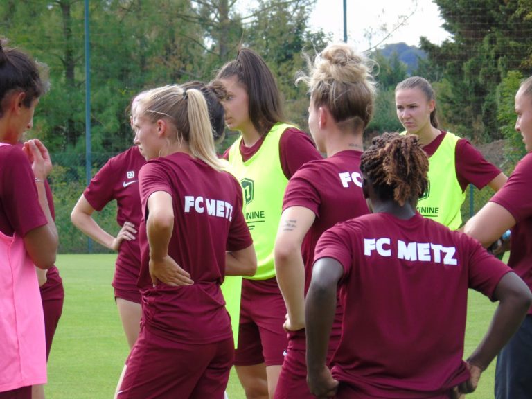 373 Trois nouvelles joueuses du FC Metz ont annoncé leur départ via leurs réseaux sociaux, elles rejoignent ainsi Charlotte Lorgeré, Mélissa Godart, Ipek Kaya, Christy Grimshaw, Jassie Vasconcelos et Sh’Nia Gordon parties cette intersaison. Christy Gavory : Après 4 années passées au FC Metz, l’étudiante en BTS management des unités commerciales tire sa révérence avec le club grenat. La milieu de terrain, internationale U20 avec l’Équipe de France était l’une des plus capées de l’effectif avec à son actif 81 rencontres toutes compétitions confondues. Ses coéquipières devront faire sans sa vivacité et son expérience pour essayer de retrouver l’élite la saison prochaine. Christy Gavory pendant une séance d’entraînement Maureen Bigot : Arrivée à Metz lors de la saison 2017-2018 en provenance de Calais, la nordiste a effectué pas moins de 58 matchs avec les messines. Vainqueur de la Turkish Cup en mars 2019 avec l’Équipe de France B, la milieu de terrain s’est engagée officiellement lundi soir avec le club de Fleury en D1 Arkema. On se souviendra de son but d’anthologie contre Le Mans en 2018, ce qui lui avait valu les honneurs de Téléfoot. #FCMetz Le magnifique but de @BigotMaureen cet après-midi contre Le Mans et merci à tous de nous avoir suivis en live. 👍#D2F pic.twitter.com/sqBMK4r7Y0— Let's Go Меtz (@letsgomtz) April 1, 2018 Hélène Fercocq : Débarquée du Stade De Reims il y a deux ans maintenant, l’internationale U20 de l’Équipe de France a fait savoir via son compte Instagram que son aventure avec le FC Metz s’arrêtait ici. Toujours de bonne humeur dans le vestiaire, la milieu de terrain nous avait déclaré il y a un an dans une franche interview : « J’aime faire le clown, et quelque part je pense que cela doit faire partie de la vie d’un sportif de dégager de l’énergie« . Avec une quarantaine de matchs à son actif avec les grenats, nul doute qu’Hélène trouvera un nouveau challenge à sa portée, quelque part en Côte-d’Or… Hélène Fercocq, ici au centre de l’image, attentive au discours du coach Par ailleurs, le FC Metz a fait savoir la semaine dernière que sept joueuses avait prolongé avec le club à la croix de Lorraine, il s’agit de Justine Rougemont, Amélie Delabre, Justine Lerond, Célia Rigaud, Morgane Belkhiter, Julie Pasquereau et Marie Levasseur. Les messines possèdent donc une base solide avec des joueuses habituées à évoluer en D1 et en D2. Crédit photo et vidéo : Julien Buret