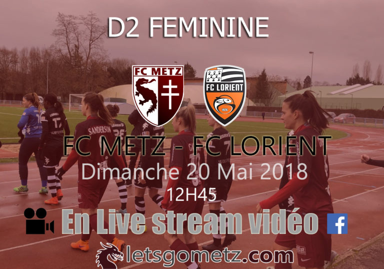 342 En accord avec le FC Metz, Let’s Go Metz vous proposera le live streaming de la rencontre entre le FC Metz et le FC Lorient. Rendez-vous dimanche 20 Mai à 12h45 sur notre page Facebook.