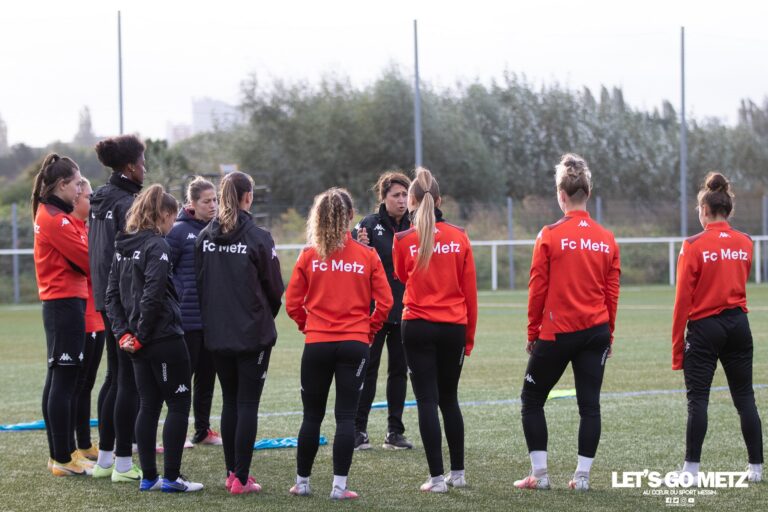 763 Quatrièmes à une longueur du podium, les joueuses du FC Metz sont en quête d’un premier succès à l’extérieur cette saison. Elles iront défier le Stade Brestois dimanche en terres bretonnes. Trois victoires contre un nul et une défaite. Le bilan du FC Metz est 100% positif à domicile mais plutôt mitigé à l’extérieur. Le constat est sans appel, les grenats peinent à ramener des points loin de leurs terres. Si les protégées de Jessica Silva proposent un football séduisant, certains faits de jeu ont coupé l’herbe sous le pied des Messines. Lors de la deuxième journée par exemple lorsqu’en plein temps fort, Kelly Koné est exclue pour « excès d’engagement ». Une décision très sévère et une sanction totalement disproportionnée puisque la buteuse grenat écopera de trois matchs fermes de suspension. Surréel. Réduites à dix, les messines domineront malgré cela les débats sans parvenir à marquer et craqueront en fin de rencontre. Trois semaines plus tard, à Lens, une histoire de penalty litigieux dans les derniers instants va également priver les Messines d’une précieuse victoire. Frustration. Une défense solide Célia Rigaud, conduite de balle et vitesse de pointe. Si l’harmonie et la belle ambiance au sein du groupe ne font pas débat, le projet de jeu proposé par les grenats cette année est tout aussi séduisant. Défensivement, la ligne de quatre composée par Clara Petitjean, Marine Morel, Eva Kouache et Célia Rigaud s’entend à merveille. Avec seulement quatre buts encaissés dont deux sur penalty, le FC Metz possède la troisième meilleure défense du championnat. Dans ses buts, Justine Lerond sait se montrer décisive comme elle l’a encore montré face à Strasbourg. Au milieu de terrain, le placement en pointe basse de Candice Gherbi permet de nombreuses montées des latérales. Célia Rigaud a particulièrement brillé et montré sa pointe de vitesse dans cet exercice lors du derby. Être des tueuses devant le but Amélie Delabre dans ses œuvres. Avec neuf réalisations en cinq rencontres, les grenats se classent parmi les très bonnes équipes du championnat. Mais compte tenu du nombre impressionnant d’actions de but obtenues par les attaquantes du FC Metz, la moyenne devrait se situer bien au-dessus. Un manque de réalisme qui a déjà coûté cinq points au club à la croix de Lorraine. La longue (et injustifiée) suspension de la buteuse maison Kelly Koné n’y est pas étrangère, même si le front de l’attaque messine et les milieux offensives font le job. L’avant-centre grenat nous confiait avoir des fourmis dans les jambes et attendre son retour avec impatience pour rattraper le temps perdu. Brest, objectif trois points On n’a toujours pas gagné de match à l’extérieur et ce sera notre objectif dimanche prochain en Bretagne. Jessica Silva a fixé ses objectifs pour le déplacement à Brest. La tâche ne sera pas simple face à la formation bretonne. En effet le Stade Brestois ne compte qu’un petit point de moins et talonne le FC Metz au classement. Un début de saison intéressant pour les filles de Yacine Guesmia qui ne se sont inclinées qu’une fois à domicile, face au LOSC, et un groupe composé de quatre anciennes Messines. Ipek Kaya, Morgane Belkhiter, Joy Sarpong et Orane Schmeler. Nul doute qu’elles auront à cœur de briller à domicile face à leurs anciennes coéquipières. Mais la détermination des joueuses du club à la Croix de Lorraine est immense et l’objectif est clair : la victoire à tout prix. Crédit photo : Julien Buret