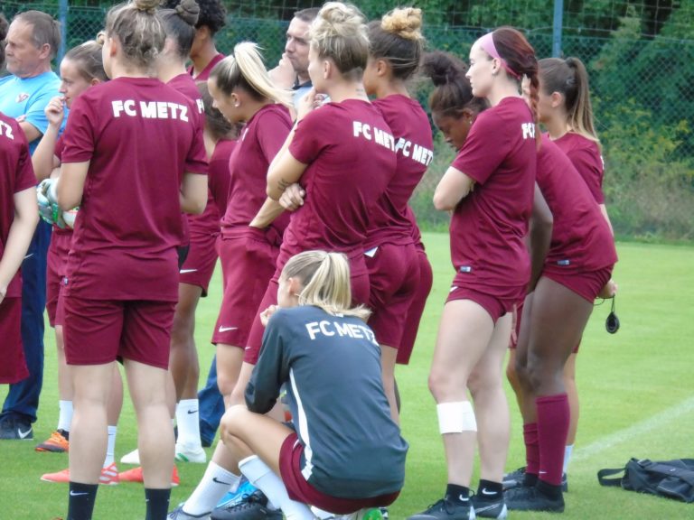 562 Le FC Metz s’active du côté des arrivées. Après la vague de départs du mois dernier, le club à la croix de Lorraine compte déjà 7 recrues estivales. Lucie Esnault À tout juste 20 ans, la jeune gardienne rejoint donc le FC Metz. Arrivée en provenance du Montpellier HSC et passée par l’A.S.J Soyaux, la Royannaise compte actuellement 2 sélections en Equipe de France U17 où elle a côtoyé une certaine Justine Lerond. Cette dernière ayant annoncé sa prolongation avec le club mosellan le mois dernier, c’est probablement dans un rôle de doublure que Lucie viendra renforcer l’équipe féminine qui était dépourvue -officieusement- de gardienne remplaçante depuis le mystérieux départ en cours de saison de Devon Kerr. Les deux gardiennes se retrouveront sur les terrains d’entraînements du FC Metz Océane Picard Passée par le SC Fribourg ou le FC Vendenheim, la milieu de terrain de 18 ans vient donc renforcer l’effectif grenat. Malgré son jeune âge, l’alsacienne possède déjà pas mal d’expérience. Internationale U19 avec l’Equipe de France, Océane connaît déjà bien les joutes de la D2 Féminine puisque la saison dernière elle participa à 13 rencontres de championnat avec le club du bas-rhin. La joueuse a fait toutes ses classes en Equipe de France Léa Munier Elle aussi internationale U19 avec l’Equipe de France de football, la milieu de terrain nous arrive tout droit de l’ASNL et retrouvera une ancienne partenaire en la personne de Kelly Koné. Participant à 22 rencontres en deux ans avec le club au chardon, la nancéienne essaiera de franchir un nouveau cap en moselle. Léa Munier avec le maillot du club rival Crédit Photo : Image mise en avant (Julien Buret), Lucie Esnault (Instagram Lucie Esnault), Océane Picard (Getty Images/Alex Caparros), Léa Munier (ASNL)