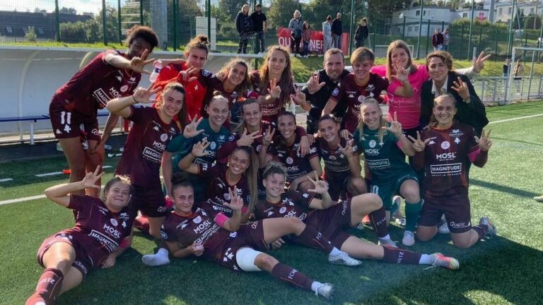 2,6K Le FC Metz a remporté son premier succès à l’extérieur sur le terrain de Brest. Les messines réalisent la très bonne opération du jour et s’invitent sur le podium de D2 Féminine. C’était l’objectif affiché par Jessica Silva, le FC Metz revient de Brest avec les trois points. Une victoire nette 2-0 avec des buts de Kelly Koné (13′) et Adèle Connesson (75′). Premier succès à l’extérieur mérité et une très belle opération au classement de D2 Féminine. Les grenats sont désormais à 13 points, au coude à coude avec le LOSC, Le Havre et à un point du leader Nantais. Mieux encore elles laissent les Brestoises à quatre longueurs et les Strasbourgeoises à Six. Les rivales Alsaciennes qui de leur côté se sont inclinées à domicile face à la Roche/Yon. De quoi savourer et préparer sereinement la réception de Saint-Malo dans deux semaines. Retour victorieux pour Kelly Koné Après un mois sans compétition, l’avant-centre et buteuse maison retrouvait enfin ses coéquipières. Sévèrement exclue face au Havre, Kelly Koné se devait de briller face à son ancien club. Et elle n’a pas attendu longtemps avant de retrouver ses marques. Après deux occasions franches dans les premières minutes, la numéro 11 grenat ouvrait le score sur un coup de pied arrêté. Retour réussi pour Kelly qui a dynamisé l’attaque du FC Metz. Retour victorieux pour Kelly Koné Solidité défensive, efficacité offensive Fière de la prestation de son équipe Jessica Silva ne cachait pas sa satisfaction : « Les filles ont fait une excellente prestation. Elles ont été très bonnes dans l’utilisation du ballon et ont su gérer leurs émotions ! ». Si la défense a de nouveau réalisé un clean sheet, l’attaque du FC Metz s’est montrée efficace, juste ce qu’il faut : « Les filles se sont à nouveau créées beaucoup d’actions de buts et auraient pu se mettre à l’abri plus tôt. » Les Bretonnes ont beaucoup tenté en seconde période. Mais les Messines ont tenu et poussé les coéquipières de Morgane Belkhiter à la faute. Réduites à 10 suite à l’expulsion de Fanny Pereira, les protégées de Yacine Guesmia ont craqué en fin de rencontre. Adèle Connesson, entrée en cours de match, douchait les espoirs Brestois. Adèle Connesson a assuré la victoire des grenats « On ne regarde pas trop le classement… » Désormais à un point du leader Nantais au côté du LOSC et du Havre, les Messines jouent le haut du tableau. En pleine confiance, les joueuses du club à la Croix de Lorraine prennent une avance non négligeable sur leurs poursuivantes. Mais pour Jessica Silva, hors de question de s’extasier sur le classement : « Aujourd’hui les résultats sont en notre faveur mais on ne regarde pas trop le classement. On est concentré sur nous-même. Le plus important c’est d’avoir fait une très belle performance à Brest, face à des anciennes Messines. On ramène les trois points à Metz et c’est ça qui compte !« Une première victoire à l’extérieur qui fait du bien au moral Prochain rendez-vous pour les grenats, le Dimanche 31 octobre au Stade Dezavelle face à Saint-Malo. Propos recueillis par Gérald Russello – Crédit photo : Julien Buret et Justine Peissel