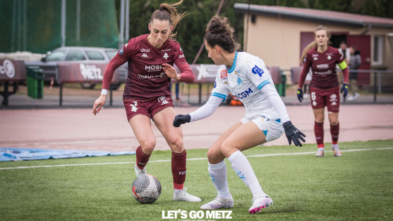 1,9K Repositionnée ailière droite depuis quelques matchs, Estelle Laurier apporte du danger dans son couloir. Une solution tactique qui pourrait aider le FC Metz à réaliser un coup sur la pelouse du RC Lens ce dimanche. La lutte pour le maintien en D2 Féminine se poursuit. Le FC Metz (10e, 17 points) se déplace sur la pelouse du RC Lens (5e, 21 points), ce dimanche (15h). Pour s’éloigner de la zone rouge, les joueuses de Jérôme Bonnet devront continuer à montrer de belles vertus mentales et techniques, afin de créer la surprise dans le Pas-de-Calais. Pour ce faire, le club à la Croix de Lorraine peut compter sur une nouvelle solution en attaque. Positionnée en tant que latérale droite, ou piston droit selon le système, depuis son arrivée en Moselle, Estelle Laurier évolue un cran plus haut depuis quelques rencontres.Choix payant puisque l’ancienne Lyonnaise pèse offensivement. Elle a d’ailleurs marqué le seul but des Grenats face à Thonon Evian (1-1), lors du dernier match. « Forcément déçue du résultat mais je suis contente d’avoir marqué, cela fait toujours plaisir d’aider l’équipe, d’être décisive. Offensivement, je me sens un peu plus libre. Je fais ce que me demande le coach et j’essaye d’être performante partout où le coach me fait jouer », expliquait Estelle Laurier à notre micro. Estelle Laurier, une joueuse polyvalente Le repositionnement d’Estelle Laurier sur un poste d’ailière droite est un choix fort de la part de Jérôme Bonnet. « Pour la connaître depuis qu’elle est jeune – quand elle évoluait à Lyon – je sais ses qualités de vitesse, de percussion, de centre, dans le jeu combiné… C’est pour cela qu’on l’a mise un cran plus haut, afin d’avoir un peu plus de maîtrise sur la largeur complète », détaille l’entraîneur du FC Metz.Si le club à la Croix se cherche encore dans le jeu, l’apport de l’expérimentée Rhodanienne donne au staff de franches garanties quand il s’agit d’appréhender l’évolution d’un match. « C’est l’avantage d’avoir des joueuses polyvalentes comme Estelle. 4-3-3, 3-5-2… Je peux faire évoluer le système en fonction des besoins de l’équipe. Elle a également eu l’occasion de jouer en 10 quand elle était en Allemagne. Elle peut être l’une des leaders techniques de l’équipe », souligne Jérôme Bonnet. D2F : RC Lens – FC Metz, ce dimanche (15h) Crédit photo : Julien Buret / Let’s Go Metz