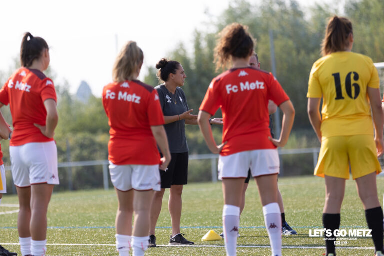 539 La calendrier 2022-2023 de D2F vient d’être publié par la FFF. Les messines qui seront dans le groupe A, débuteront le championnat à domicile contre l’US Saint-Malo. Arrivées 4e du dernier exercice, les joueuses du FC Metz connaissent enfin le calendrier pour la saison de D2F à venir. Avec l’instauration d’une D3F la saison prochaine, les messines devront vite se mettre à l’abri. En effet, cette année pas moins de 6 équipes seront reléguées à l’échelon inférieur. Phase aller Journée 1 : FC Metz – US Saint-Malo, le 11 septembre 2022*Journée 2 : Le Mans FC – FC Metz, le 18 septembre 2022*Journée 3 : FC Metz – ESOF La Roche Sur Yon, le 25 septembre 2022*Journée 4 : LOSC Lille – FC Metz, le 2 octobre 2022*Journée 5 : FC Metz – CA Paris 14, le 16 octobre 2022*Journée 6 : GPSO 92 Issy – FC Metz, le 23 octobre 2022*Journée 7 : FC Metz – RC Lens, le 30 octobre 2022*Journée 8 : Stade Brestois 29 – FC Metz, le 6 novembre 2022*Journée 9 : FC Metz – US Orléans Loiret, le 27 novembre 2022*Journée 10 : FC Nantes – FC Metz, le 4 décembre 2022*Journée 11 : RC Strasbourg Alsace – FC Metz, le 22 janvier 2023* Phase retour Journée 12 : FC Metz – Le Mans FC, le 5 février 2023*Journée 13 : ESOF La Roche Sur Son – FC Metz, le 12 février 2023*Journée 14 : FC Metz – LOSC Lille, le 26 février 2023*Journée 15 : CA Paris 14 – FC Metz, le 12 mars 2023*Journée 16 : FC Metz – GPSO Issy 92, le 26 mars 2023*Journée 17 : RC Lens – FC Metz, le 2 avril 2023*Journée 18 : FC Metz – Stade Brestois 29, le 16 avril 2023*Journée 19 : US Orléans Loiret – FC Metz, le 23 avril 2023*Journée 20 : FC Metz – FC Nantes, le 7 mai 2023*Journée 21 : FC Metz – RC Strasbourg Alsace, le 14 mai 2023*Journée 22 : US Saint-Malo – FC Metz, le 28 mai 2023* *Dates et horaires à confirmer Comme l’an dernier, les protégées de Jessica Silva pourront compter sur un alléchant derby contre leur voisin le RC Strasbourg Alsace. A noter que les grenats joueront trois nouveaux adversaires cette année : le CA Paris 14, le GPSO Issy et le Mans FC. Toujours présent dans le groupe A, les messines devront se méfier du FC Nantes, du LOSC, de Strasbourg et et du RC Lens entre autres. Crédit Photo : Julien Buret/LGM