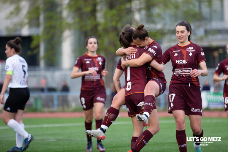 459 Ce dimanche à l’occasion de l’avant-dernière journée de D2F, le FC Metz est « en déplacement à domicile ». Les Messines reçoivent l’US Orléans sur la pelouse du stade de Guentrange à Thionville. Un dernier match en Moselle, mais un peu loin de Dezavelle. Ce dimanche, la D2F reprend ses droits et le FC Metz est en déplacement… à domicile. Habituées du stade Dezavelle derrière Saint Symphorien, les Messines reçoivent donc à l’extérieur pour la seconde fois de l’année. La première, c’était en janvier face au Havre. Ce match marquait d’ailleurs un coup d’arrêt dans la saison jusque là somptueuse des protégées de Jessica Silva. Sur la pelouse du stade de Maizières-lès-Metz, les grenats s’étaient inclinées 1 à 0 sans jamais trouver la faille. Depuis les temps ont changé et les Messines ont lâché trop de points pour espérer recoller au haut de tableau. Le maintien étant largement assuré, les joueuses du club à la Croix de Lorraine terminent donc la saison sans véritable pression ni enjeux. Enfin presque… Bien terminer la saison Quatrièmes à désormais dix longueurs du HAC, le FC Metz n’a plus rien à jouer. Pourtant, les Messines espèrent bien terminer la saison tambour battant à l’image de leur écrasante victoire il y a quinze jours face à Vendenheim. Et si la montée devra attendre, il reste encore quelques challenges à relever pour les deux dernières rencontres. Tout d’abord, préparer l’avenir. Le turn-over effectué avec succès lors du dernier match a permis a certaines jeunes joueuses de se montrer. A quelques semaines du début de l’intersaison, le staff de la section féminine prépare déjà l’avenir et si certaines joueuses seront sans doute sur le départ prochainement, d’autres pourraient dès à présent marquer les esprits et s’imposer avant de prolonger l’aventure. Enfin, un autre challenge attend les Messines : Laisser derrière elles au classement les rivales strasbourgeoises et lensoises. Respectivement à un et trois points des grenats, les deux écuries nordiques et alsaciennes veulent finir devant les Mosellanes. Il ne faudra donc pas prendre ces deux rencontres à la légère si les joueuses du FC Metz veulent garder leur place de quatrièmes voire même rejoindre ou dépasser le LOSC pour finir dans le trio de tête. Première étape ce dimanche à 15h à Thionville face à Orléans. Coup d’envoi 15h00 – Stade de Guentrange – 6, route de la sportive – 57100 Thionville Crédit photo : Julien Buret/LGM