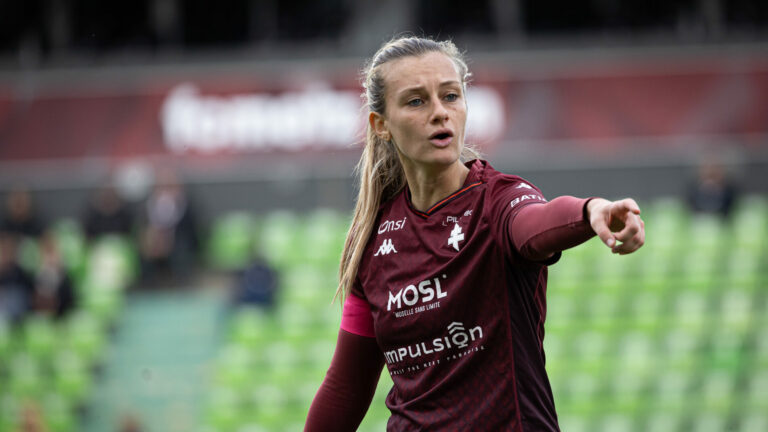 732 Pour la sixième journée de D2F, les joueuses du FC Metz s’en vont en Haute-Savoie défier leurs homologues du Thonon Évian Grand Genève Football Club. Attention, gros danger face à la lanterne rouge. Mal en point dans ce premier quart de saison de D2F avec une seule victoire, un nul et trois défaites, les féminines du FC Metz vont devoir se surpasser dimanche à Évian pour revenir avec un résultat. Face à la lanterne rouge du championnat (deux nuls et trois défaites), l’occasion est belle pour les protégées de José Pinot de retrouver des couleurs et surtout de l’efficacité défensive et offensive. Pire défense et pire attaque du championnat à l’heure actuelle, les Grenats doivent impérativement revenir avec un résultat positif, au risque de sombrer encore un peu plus classement. Pour autant, la tâche ne sera pas des plus aisées. Le Thonon Évian Grand Genève Football Club espère bien lancer sa saison et gagner son premier match à domicile. Solenne Ninot et les Grenats voudront se relancer à Évian Quel visage pour le FC Metz face à Évian ? José Pinot devra composer dimanche avec les absences de Clara Petitjean (suspendue), Marine Morel (blessure) et Chloé Zubieta, revenue blessée du championnat universitaire où la France a terminé troisième. L’occasion pour Elise Morris de glaner sa première titularisation en défense centrale aux côtés de Clara Moreira, de retour de sélection avec le Portugal. Emmeline Mainguy (Martinique), Marème Babou et Safietou Sagna (Sénégal) ont, elles aussi, participé à la trêve internationale avec leur sélection. C’est également le cas de Lucie Calba qui a inscrit le premier but de l’équipe de France U19 face à l’Irlande du Nord (un but inscrit au bout de 19 secondes de jeu !). Entre suspension, blessures et contre-performances, les forces en présence pourraient inciter le coach du FC Metz à procéder à quelques changement tactiques. La belle prestation de Solenne Ninot face à Orléans et l’entrée en jeu pleine de promesses d’Adélie Fourré en attaque, redistribuent les cartes et devraient insuffler un vent nouveau dans le jeu des Messines. Un changement de cap désormais nécessaire, voire indispensable, pour redonner de la confiance et de l’efficacité à un FC Metz déjà très mal embarqué cette saison. Adélie Fourré face à Orléans Le FC Metz doit absolument retrouver le chemin de la victoire, sous peine de plonger au classement. Les Messines seraient bien avisées de profiter de l’air pur du lac Léman pour prendre les trois points et se relancer avant les deux prochaines rencontres contre Lens à domicile puis à Strasbourg. Thonon Évian GG FC – FC Metz : Dimanche 05 novembre, coup d’envoi à 15h00 au stade Joseph Moynat, Thonon-Les-Bains. Crédit photos : Julien Buret/Let’s Go Metz