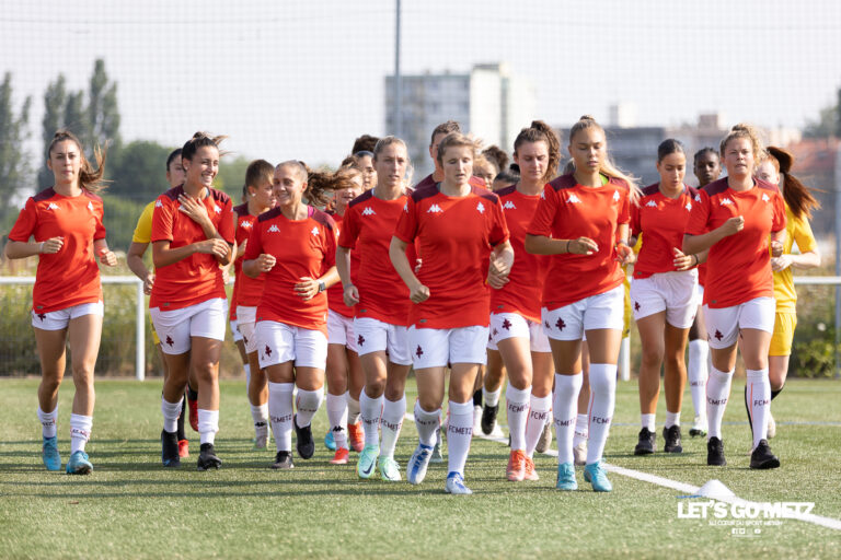 426 Alors que le mercato a été mouvementé du côté des féminines, c’est l’heure de la reprise des entraînements pour le FC Metz. Finies les vacances ! Deux mois après la dernière rencontre de D2F, c’est l’heure de la reprise des entraînements pour la section féminine du FC Metz. Et le moins qu’on puisse dire c’est que la cellule de recrutement n’a pas chômé durant ces 9 semaines. Renouvellements de contrats, arrivées et départs emblématiques, le nouveau groupe pas encore tout à fait au complet a foulé la pelouse d’entraînement de la plaine ce mercredi. Une première revue d’effectif pour Jessica Silva et l’occasion de faire connaissance avec ses nouvelles protégées. Un groupe bien renforcé Malgré quelques départs de joueuses emblématiques, le dernier en date étant celui de Justine Rougemont vers le LOSC, le FC Metz s’est bien renforcé durant ce mercato. Outre des prolongations en cascade, le club à la Croix de Lorraine pourra compter sur des recrues de qualité. D’Estelle Laurier, en passant par Lalia Dali-Storti, Ottilia Livia Vitoria Grassetti, Yakaré Niakaté ou plus récemment Emmeline Mainguy et Emma Francart, le nouveau millésime grenat a de quoi séduire. Quelques départs et peut-être une ou deux arrivées peuvent cependant encore survenir d’ici la première journée. Les Messines ont donc repris le chemin des terrains du centre d’entraînement de la plaine sous une chaleur écrasante. L’occasion de faire connaissance pour certaines et pour d’autres de se retrouver dans la joie et la bonne humeur. Toutes les photos de ce premier entraînement sont à retrouver sur notre page Facebook. Crédit photos : Julien Buret/LGM