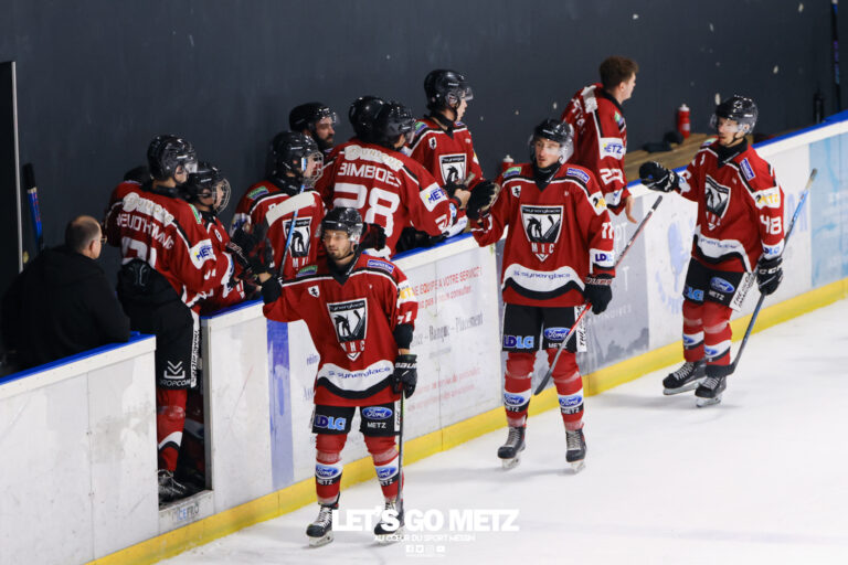 872 D3 – Le Metz Hockey Club s’est largement imposé (9-1) face à Dijon, samedi 14 décembre à domicile. Une jolie victoire avant Noël. Un maillot spécial Noël et une pluie de cadeaux pour ses supporters ! Le Metz Hockey Club n’a pas fait les choses à moitié pour sa dernière sortie de l’année 2024, face à la réserve des Ducs de Dijon. Les Graoullys ont trouvé la faille à neuf reprises, pour le plus grand plaisir des spectateurs de la Ice Arena. Une victoire totale (9-1) avec notamment sept points chacun pour l’entraîneur-joueur Lukas Zeliska et le capitaine Yannick Hamri, où le gardien Raphaël Henrottay, habituelle doublure de Tristan Thévenot, a pu s’illustrer.Seules ombres au tableau de cette belle victoire, la sortie sur blessure de Tehano Sebal en tout début de rencontre (0’18), secoué par une charge à la tête et les 25 minutes de pénalité dont Gleb Vorobyev a écopé une charge dans le dos (45’13). Le Metz Hockey Club passera néanmoins les fêtes au chaud. « C’était important de gagner après deux matchs compliqués contre Compiègne. On a pris les trois points, on a soigné le goal average et Raph (Henrottay) a fait un très bon match dans les buts. Maintenant un peu de repos, on va profiter de nos familles et on réattaque l’année 2025 (le 4 janvier) à Dijon ! », savoure Yannick Hamri. Joyeux Noël ! – Photo : Arthur Carmier / Let’s Go Metz Metz Hockey Club 9-1 Dijon B Tiers-temps : 4-1, 2-0, 3-0. Buts pour le Metz Hockey Club : Zeliska (0’38, 12’23, 42’53, 50’49, 52’55), Preud’Homme (6’30), Hamri (16’39, 33’56), Stablo (35’40) ; pour Dijon : Alexandra (15’01). Statistiques des Graoullys Zeliska : 7 points (5 buts, 2 assists) Hamri : 7 points (2 buts, 5 assists) Le Héron : 3 points (3 assists) Lagoguey : 2 points (2 assists) Stablo : 1 point (1 but) Preud’Homme : 1 point (1 but) Mercier : 1 point (1 assist) Casula: 1 point (1 assist) Renard: 1 point (1 assist) Classement de la D3 Image à la une : Stephan Weyrath / Let’s Go Metz (archive)