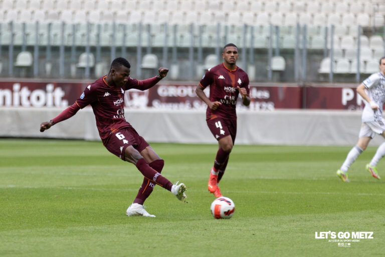 565 Arrivé à Metz l’été dernier, Danley Jean-Jacques prolonge son bail au FC Metz jusqu’en 2024. Avec un objectif, jouer avec l’équipe première. Alors qu’il avait signé son premier contrat professionnel d’un an au printemps dernier, Danley Jean-Jacques vient de prolonger avec le FC Metz jusqu’en 2024. Le natif de Petit-Gôave (Haïti) a séduit sous le maillot de l’équipe réserve la saison dernière. Danley Jean-Jacques est apparu à quinze reprises au sein du groupe B de National 2. International haïtien dans les catégories jeunes, le milieu de terrain âgé de 22 ans a assisté depuis le banc de touche à six rencontres de Ligue 1 Uber Eats. La première fût couronnée d’une victoire à Reims le 16 janvier 2022. Objectif : Équipe première ! Danley Jean-Jacques a semble-t-il séduit le nouveau staff grenat. A la recherche de profils s’inscrivant dans des critères bien précis, László Bölöni a décidé de faire confiance au jeune milieu de terrain haïtien et de lui donner sa chance. Une opportunité que Danley Jean-Jacques ne manquera pas de saisir au vol. Je suis très heureux d’avoir renouvelé mon contrat au sein du FC Metz ! Mon objectif est de continuer à travailler, à donner le maximum à l’entraînement afin de pouvoir jouer avec l’équipe première. Le ton est donné. Et l’entrejeu messin vient de trouver un nouveau prétendant. Mais le chantier est encore colossal pour définir clairement les contours de l’équipe. Quoi qu’il en soit, les premiers éléments de réponse arriveront dès samedi avec le lancement de la campagne de matchs amicaux. Le FC Metz reçoit le Racing Luxembourg sur la pelouse d’Amnéville. Enfin ! Crédit photo : Julien Buret/LGM