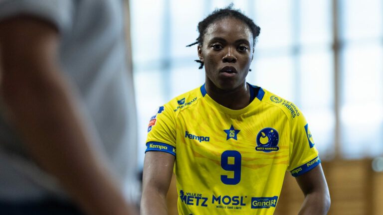 891 Présente avec l’équipe de Nationale 1 Féminine (N1F) de Metz Handball dans le cadre du derby à Yutz ce samedi, Délia Golvet s’est livrée sur ses impressions et sur son rôle de capitaine. Quand on regarde le score, on peut se dire que le match a été simple. Quel a été le ressenti de l’intérieur ?Le début de match était un peu compliqué, on a eu du mal à se mettre en jambes. Mais quand on est entrées dans le projet de jeu, on a déroulé. Il fallait qu’on joue comme on sait jouer et tout en accélérant. On a fait du Metz Handball. Jouer contre une autre équipe mosellane, c’est toujours particulier. Il y a des joueuses que l’on connait en face…Un derby, on l’appréhende toujours de façon particulière. On ne veut pas perdre contre l’équipe qui est près de chez nous. C’est un match qu’on a préparé très sérieusement et ça s’est ressenti sur le terrain. En deuxième mi-temps, des petits coups spéciaux ont été tentés, on a fait tourner aussi… Ça fait du bien de jouer libérées pour la dernière de l’année 2023 ?On avait à cœur de bien finir l’année, de bien jouer ce match. Quand le score a tourné en notre faveur, on s’est lâchées… Et ce qui est encore mieux, c’est que ça a fonctionné ! Aujourd’hui, il y avait le rôle de capitaine en plus. Habituellement, c’est Emma Tuccella qui l’endosse, qu’est ce que ça représente ?Moi, ça me fait très plaisir ! Je ne suis pas souvent avec la N1 et quand je suis là j’essaie d’apporter ma joie de vivre, ma positive attitude, ma vitesse… Je pense que c’est un honneur que d’avoir été capitaine aujourd’hui pour cette équipe. L’équipe finit en tête du classement pour cette première partie de saison, malgré la jeunesse de l’effectif. Quel est l’objectif pour la suite ?Je pense franchement que l’on abordera la deuxième partie de saison avec autant de sérieux. Il faut que l’on joue les matchs de la même manière, comme si on ne les avait pas encore joués et, encore une fois, on va et on doit faire du Metz Handball. On n’a pas droit à la défaite et on va essayer de gagner tous les matchs qu’il nous reste. Crédit photo : Julien Buret (archives)