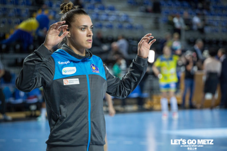 385 A l’occasion du déplacement sur le parquet du FTC Rail Cargo Hungaria pour le compte de la deuxième journée de l’EHF Champions League, un frisson a traversé les rangs des supporters du Metz Handball. Alors qu’elle faisait une superbe entrée en jeu permettant à Metz Handball de reprendre les commandes du match dans un début de partie très disputée, Laura Glauser s’est blessée suite à un jeu sans gardien. La gardienne messine a tenté de sauver un but après un retour rapide dans ses cages, son genou s’est alors dérobé… L’internationale française est sortie sur civière, en larmes. Nous laissant craindre une blessure très grave. Malgré tout, elle est réapparue sur le banc Messin au début de seconde période, ce qui ajoute de la nuance à nos craintes d’origine. La gardienne internationale devra certainement subir des examens afin d’évaluer la gravité réelle de la blessure, mais pour le moment nous pouvons espérer qu’il ne s’agisse que d’une grosse frayeur pour Laura Glauser Crédits photos : Bein Sports
