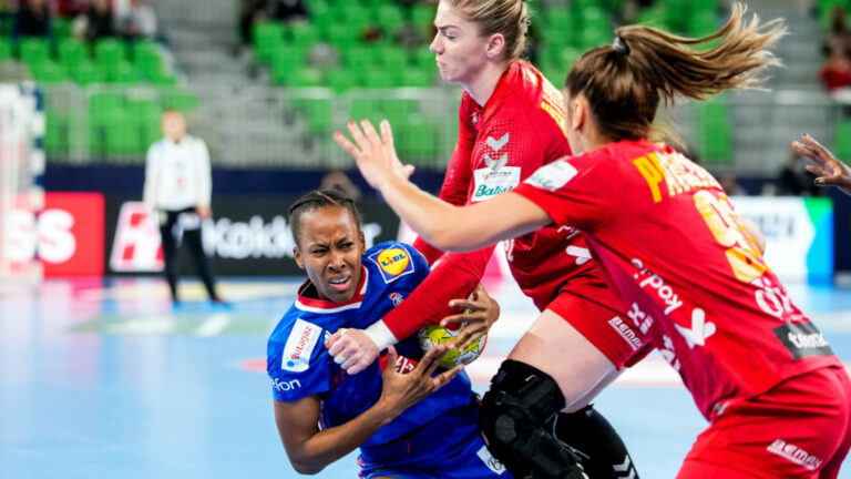 433 L’équipe de France de handball a chuté face au Monténégro dans le match pour la médaille de bronze à l’Euro 2022. Il y avait de la déception vendredi sur les visages des joueuses de l’équipe de France. Après une première partie de compétition menée de main de maître, les joueuses d’Olivier Krumbholz ont subi la dure loi de la Norvège en demi-finale en concédant leur première défaite de la compétition au terme d’une belle bataille mal récompensée par une déroute dans les quinze dernières minutes.Déjà de retour sur le parquet de Ljubljana pour disputer le match pour la médaille de bronze ce dimanche, les Bleues n’avaient d’autre choix que de se ressaisir rapidement face au Monténégro. Une équipe solide, déjà battue sèchement (27-19) une semaine plus tôt malgré les assauts de Jovanka Radicevic et l’attitude discutable des supporters à Skopje. Bras de fer à la Monténégrine Il a fallu se libérer d’une certaine pression pour les deux équipes en début de rencontre. Malgré plusieurs pertes de balles dans les dix premières minutes, les Françaises gardaient la maitrise avec un précieux but d’avance (3-4, 10ème). La rage monténégrine se manifestait par l’intermédiaire de Jaukovic et Grbic, entretenues dans cette démarche par les nombreux supporters présents en tribunes et les Bleues devaient se résoudre à batailler pour garder leur possession d’avance. C’est finalement un tir d’Ondono, capté par Batinovic qui donnait la chance aux rouges de mener la danse (7-6, 15ème). Une situation inconfortable pour des Françaises habituées à gérer l’avance. Pavicevic offrait le break aux siennes (8-6, 16ème) mais une série de fautes contraignait les deux équipes à batailler en effectif réduit pendant quelques minutes. Malgré un but de Déborah Lassource et la grosse implication de Lucie Granier en défense, l’avance de deux buts fluctuait peu. Les Monténégrines cumulaient cependant de nouvelles suspensions de deux minutes en raison de leur légendaire jeu physique et permettaient aux tricolores de revenir à égalité (11-11, 26ème). Après un temps mort d’Olivier Krumbholz et une séquence offensive particulièrement compliquée, Estelle Nze Minko envoyait un missile en lucarne à distance pour redonner les rênes aux siennes (11-12, 28ème). Batinovic se montrait cependant décisive dans les buts et les rouges parvenaient à rejoindre le vestiaire avec un but d’avance. Un cadeau offert par Grbic via un tir de sniper à la dernière seconde.Score à la mi-temps : 13 – 12 (Photo by Hugo Pfeiffer/Icon Sport) Une longue traversée du désert Laura Flippes inscrivait le premier but de la seconde mi-temps après une faute grossière et non sanctionnée de Djaukovic sur Sercien Ugolin. Dans les buts français, Floriane André démarrait bien son match avec un arrêt mais Batinovic lui répondait de belle manière à deux reprises. La défense 5-1 des bleues ne parvenait pas à bloquer les offensives adverses (15-13, 35ème). Prises par la pression, les Bleues laissaient glisser de trop nombreuses situations offensives, poussant Olivier Krumbholz à poser un temps mort (16-13, 38ème)Les principales conséquences de cet arrêt de jeu ? Un retour de Cléopatre Darleux et une défense 0-6 pour tenter de reprendre la marche en avant.Au terme d’un nouveau bras de fer, Lucie Granier inscrivait un but de grande classe en roucoulette face à deux défenseures pour redonner de l’allant à une équipe bien terne depuis le retour des vestiaires. Orlane Kanor prenait ses responsabilités à son tour avec un jump dont elle a le secret et les bleues retrouvaient des couleurs (17-15, 42ème). Les Françaises se rendaient coupables de plusieurs fautes et le jeu devenait de plus en plus haché au fil des minutes, permettant aux Monténégrines de se reposer sur une avance de 3 buts bien stabilisée (20-17, 50ème). Un come back inespéré Orlane Kanor, un poteau et la suspension de Radicevic semblaient redonner une chance aux championnes olympiques mais Batinovic se dressait à nouveau face à un tir pour stopper la dynamique (20-18, 53ème). Plus promptes à se découvrir défensivement, les Bleues réalisaient plusieurs interceptions pour revenir au contact (20-19, 55ème). Malgré une interruption de jeu, Deborah Lassource remettait le match à égalité (20-20, 56ème), Estelle Nze Minko capitalisait à son tour sur la traversée du désert monténégrine pour enfin redonner un but d’avance aux siennes.De retour à égalité après un penalty, les deux équipes s’engageaient alors dans un money time à la tension extrême. Les Monténégrines pensaient avoir gagné la partie mais une faute de Grbic dans les dernières secondes donnait l’opportunité à Grâce Zaadi d’égaliser sur penalty pour envoyer les deux équipes en prolongation. Malgré diverses perturbations liées aux supporters, la Française inscrivait le but et donnait une chance aux Bleues de conquérir la victoire en prolongation.Score après la deuxième mi-temps : 22 – 22 (Photo by Hugo Pfeiffer/Icon Sport) Terrible prolongation Dans une ambiance extrêmement tendue, c’est le Monténégro qui a su tirer son épingle du jeu. Si on retiendra une forte tendance de l’arbitrage à sanctionner de suspensions de deux minutes toutes les joueuses venant à effleurer une Djurdjina Djaukovic prompte à la simulation, l’équipe monténégrine a finalement été récompensée de ses efforts. L’équipe de France n’a pas su imposer son jeu et en paie les frais à la fin des 70 minutes de jeu.Score final de ce Monténégro France : 27 – 25 Malgré un match sérieux ne cachant pas d’immenses difficultés, les Bleues chutent pour la deuxième fois de cet Euro. Systématiquement sur le podium lors de toutes les dernières compétitions internationales avant cet échec, l’équipe de France de handball féminin va rapidement entamer la reconquête 