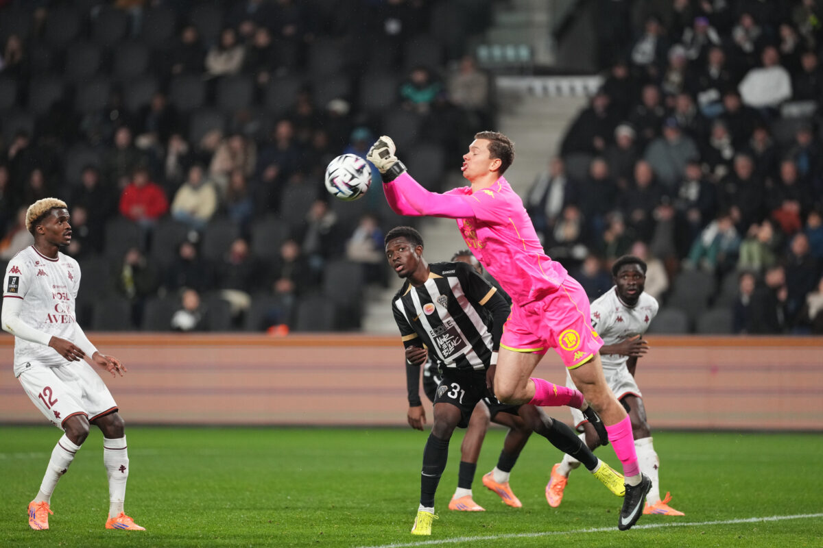 101 La maison brûle et le FC Metz n’a toujours pas trouvé le moyen d’éteindre les flammes. Sur la pelouse d’Angers ce dimanche 1er février 2026, les Grenats ont encaissé une quatrième défaite consécutive (1-0) et restent lanterne rouge de Ligue 1. C’est l’histoire d’un supplice qui n’en finit pas de se prolonger. À domicile comme à l’extérieur, le FC Metz ne semble plus retrouver le bout du tunnel qu’il a perdu il y a désormais presque trois mois. Il subsistait pourtant quelques raisons d’imaginer qu’il aurait pu s’entrevoir sous les néons du stade Raymond-Kopa. Cette équipe d’Angers, qui n’avait pas fait forte impression lors de sa venue à Saint-Symphorien mi-septembre en arrachant péniblement un match nul grâce à un pénalty, semblait à la portée des Grenats. Puis après tout, ils n’avaient plus remporté le moindre match depuis mi-décembre… Volontaires, mais rapidement au tapis Malheureusement, les espoirs messins allaient rapidement s’effacer à mesure que la semelle de Jean-Philippe Gbamin allait glisser sur le ballon et frotter le tibias d’Haris Belkebla (9′). Un excès d’engagement pour lequel le défenseur finissait par être expulsé après intervention de l’arbitrage vidéo. Malgré une entame de match volontariste, avec une première tentative d’alerte d’Habib Diallo (4′), les joueurs du FC Metz se retrouvaient rapidement à court d’idées, laissant le ballon à des Angevins dans la gestion, attendant patiemment la faille. Et elle ne mettait pas bien longtemps à arriver : Branco Van den Boomen lançait Carlens Arcus – tout seul – dans la profondeur, qui trouvait ensuite Louis Mouton – encore tout seul – au beau milieu de la surface. La frappe croisée qui s’ensuivit finissait dans le petit filet droit de Jonathan Fischer (25′). La joie de Louis Mouton, unique buteur de la partie. Photo : Dave Winter/FEP/Icon Sport « On ne peut pas dire que les joueurs n’ont pas défendu les couleurs » En infériorité numérique, sans réelle capacité de sursaut mais sans ménager d’efforts non plus, les Grenats ne pouvaient faire autre chose que subir les – trop nombreux – assauts angevins (17 tirs, contre 5 messins). « Même à 10 contre 11, on a eu des récupérations mais on a eu trop de déchet technique, rembobine Benoît Tavenot. Il fallait être capable de garder un peu plus le ballon et on aurait pu les déséquilibrer sur certaines récupérations. » Dans leur calvaire, ils pouvaient compter sur un Jonathan Fischer impliqué, auteur d’arrêts décisifs (48′, 56’…) sans toutefois en recevoir les dividendes. Ces derniers auraient presque pu s’avérer décisifs si le temps fort inespéré des dix dernières minutes finissait par être concluant. Mais la frappe de Koffi Kouao dans la surface, qui concluait un contre éclair bien mené, s’envolait au-dessus de la cage d’Hervé Koffi (82′). Et la tête plongeon de l’Angevin Jordan Lefort, sur un centre de Giorgi Tsitaishvili, était finalement détournée par le gardien alors qu’elle filait tout droit dans son but (88′)… Jonathan Fischer a été la seule véritable satisfaction de cette rencontre. Photo : Dave Winter/FEP/Icon Sport Si près, mais si loin à la fois, ce point du match nul aurait pu récompenser la volonté de ne rien lâcher, mais les lacunes étaient trop importantes pour achever l’ébauche d’un miracle. « On ne peut pas dire ce soir que les joueurs n’ont pas couru, n’ont pas défendu les couleurs, constate Benoît Tavenot. Mais ça ne paye pas aujourd’hui, parce qu’il faut être meilleur avec le ballon, c’est une évidence… » « Il n’y a que la victoire qui ramène du baume au cœur » Quinze jours après l’arrivée de l’ancien entraîneur du SC Bastia, l’électrochoc espéré ne s’est – visiblement – toujours pas déclenché et le sort s’acharne malgré la bonne volonté de joueurs « pas tricheurs » mais qui ne peuvent espérer mieux à ce stade. « Ils essaient de me contenter, croyez-moi », atteste le nouvel entraîneur du FC Metz. Mais lui-même le sait, « il n’y a que la victoire qui ramène du baume au cœur à tout le monde, qui ramène une énergie positive ». Et « tant qu’elle n’arrive pas, il faut charbonner, charbonner en permanence et ne pas être sur de mauvais constats. » Des propos qui trouveront sans doute un certain écho auprès d’un public messin parfois échaudé. Après une fin de match où de légères tensions ont pu apparaître entre joueurs et fans présents dans le parcage visiteur, Benoît Tavenot s’est longuement entretenu avec les supporters qui ont fait le déplacement jusqu’en Anjou. Était-ce une discussion constructive ? « L’avenir nous le dira, juge-t-il. Je sais que ce sont des gens passionnés, ils aiment leur club, ils sont investis… Je pense qu’il vaut toujours mieux discuter que pas, assure l’entraîneur. Mais qu’est-ce qui fera que ça avancera ? C’est que le FC Metz regagne, c’est tout. » Et désormais, plus que jamais, le temps presse… au stade Raymond-Kopa d’Angers (Maine-et-Loire), Mehdi Abirez. Angers SCO 1 – 0 FC Metz Angers SCO : Koffi – Arcus, Camara, Lefort, Ekomié (Hanin, 57′) – Belkebla (Djibrin, 57′), Van den Boomen (Courcoul, 69′) – Belkhdim, Mouton, Sbaï (Raolisoa, 81′) – Peter (Koyalipou, 69′). FC Metz : Fischer – Kouao (Mbala, 85′), Gbamin, Yegbe, Ballo-Touré (Colin, 58′) – Traoré (Abuashvili, 68′), Stambouli, Munongo (Deminguet, 58′) – Hein (Touré, 58′), Diallo, Tsitaishvili. Buts : Mouton (25′). Avertissements : Gbamin (expulsé, 9′), Van den Boomen (30′), Yegbe (67′), Mouton (81′). Arbitre : Benoît Millot. Affluence : 10 367 personnes.
