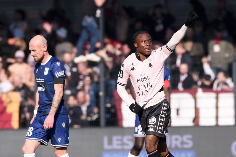 1,4K C’était l’ultime choc dans le haut de tableau de la Ligue 2, un match à six points pour les deux équipes… Et il a tenu toutes ses promesses. Au terme d’une rencontre absolument dantesque, le FC Metz s’est imposé 3-2 face à l’USL Dunkerque. Malgré un soleil radieux, il fait froid au stade Marcel-Tribut. La faute à un vent tenace. Et il se dit que l’USL Dunkerque ne gagnera pas sans Ugo Raghouber. Le milieu de terrain de 21 ans prêté par le Lille OSC et titulaire indiscutable n’est pas sur la feuille de match ce samedi 15 mars 2025. À chaque fois qu’il s’est absenté, l’USL Dunkerque a perdu : quatre matchs pour autant de défaites. Ajoutée à celle d’Enzo Bardeli, autre élément important de l’entrejeu de l’USLD, c’était une équipe un peu amoindrie que le FC Metz affrontait. Les Grenats allaient rapidement prendre le jeu à leur compte sans pour autant se montrer dangereux. Jusqu’à cette action d’école : une relance venue de derrière avec Michel Mboula à la baguette, trois passes, une accélération de Hein et la frappe croisée de Cheikh Sabaly pour finir dans les cages d’Adrián Ortolá (0-1, 30′). Appliqués et tranchants dans leurs offensives, les Messins avaient une mainmise totale sur la rencontre. La joie des Messins sur le premier but de Cheikh Sabaly. Photo : Philippe Lecoeur/FEP/Icon Sport Roublardise et efficacité Or, les vérités d’une mi-temps ne sont pas forcément celles d’un match. Au retour des vestiaires, les rôles s’inversaient et l’entrée côté dunkerquois de l’impressionnant Kaj Tejan portait déjà ses fruits. Jouant de son physique pour se débarrasser d’un Jessy Deminguet naïf, l’attaquant hollandais adressait un centre dans la surface pour Gaëtan Courtet qui déviait le ballon en direction de Diogo Queiros. Le numéro 5 ne se faisait pas prier et fracassait la cage d’Arnaud Bodart avec une reprise surpuissante. Un but magnifique mais litigieux ! Et pour cause, Courtet semblait effectuer sa remise… à l’aide de sa main gauche. En vieux roublard, en toute discrétion (1-1, 53′). Diogo Queiros peut laisser exploser sa joie : il vient de marquer l’un des buts du week-end… Et il peut remercier son passeur Gaëtan Courtet (à l’arrière plan), auteur d’une main semblant bien volontaire sur sa remise au numéro 5. Photo : Philippe Lecoeur/FEP/Icon Sport. Sonnés, les Messins allaient profiter d’un contre-temps inattendu : la blessure de l’arbitre de champ, vraisemblablement claqué. Fait de jeu rare, ce pourrait bien être celui qui a permis aux Grenats de remettre les pendules à l’heure. Et les bénéfices ne se faisaient attendre : Benjamin Stambouli gratifiait Cheikh Sabaly d’une magnifique passe dans le dos de la défense et l’attaquant sénégalais ajustait une seconde fois Ortolá (2-1, 72′). Efficaces, les Messins effaçaient l’ardoise et reprenaient les devants. Une histoire de seconds couteaux Mais voilà, encore une fois, rien ne devait se passer comme prévu. Étonnamment devenus craintifs, les Grenats se recroquevillaient dans leur camp et laissaient les Nordistes développer leurs contre-attaques. Une fois, deux fois, trois fois… Puis, alors que quatre des douze minutes de temps additionnel étaient écoulées, l’entrant Yacine Bammou croisait sa frappe en entrée de surface et la mettait hors de portée d’Arnaud Bodart (90+4′, 2-2). Le stade Marcel-Tribut explosait et un léger vent de chaleur semblait désormais souffler sur les tribunes. Il s’en fallait de peu pour qu’il accouche d’une énorme tempête sur les Messins qui voyaient la tête d’Opa Sanganté passer au-dessus de la cage de leur gardien quelques instants plus tard. Malgré cette frayeur, les Grenats ne renonçaient pas à la victoire : Gauthier Hein prenait la direction du but sur son côté gauche avant d’éliminer un joueur et de servir Idrissa Gueye dans la surface… mais son ballon était sauvé de justesse par un Nordiste qui manquait de peu de marquer contre son camp. Huit minutes étaient passées dans le temps additionnel et on conseillait presque aux âmes sensibles de quitter leur siège. Morgan Bokele, c’est deux buts sur ses deux dernières entrées. Efficace. Photo : Philippe Lecoeur/FEP/Icon Sport. C’était sans compter sur l’un des remplaçants de luxe… du FC Metz cette fois. À la finition d’une magnifique action collective, menée par Gauthier Hein et Koffi Kouao, Morgan Bokele récupérait un ballon offert sur un plateau par ce dernier et allumait le pauvre Adrián Ortolá (90+11, 2-3). L’idylle était de courte durée pour les Maritimes, elle ne faisait que commencer pour des Grenats – et un parcage – au sommet de l’exaltation. Il faisait froid au stade Marcel-Tribut. Et il se disait que l’USL Dunkerque ne gagnerait pas sans Ugo Raghouber… Leader provisoire durant quelques heures et profitant de l’énorme performance lavalloise contre le Paris FC (victoire 3-0), le FC Metz est désormais plus que jamais relancé dans la course à la montée directe, voire au titre. Il faut espérer que la trêve internationale ne gâche pas cet incroyable élan… au stade Marcel-Tribut, Mehdi Abirez. Lire aussi. « Un grand match » : la réaction de Stéphane Le Mignan USL Dunkerque 2 – 3 FC Metz USL Dunkerque : Ortolá – Georgen, Sasso, Sanganté (cap.), Abner – Queiros (Bammou, 80′), Rivera (Yassine, 84′), Pitu (Sekongo, 45′), Skytta, Al-Saad (Tejan, 45′) – Courtet. FC Metz : Bodart – Udol (cap.), Mboula, Sané, Kouao – Deminguet, Stambouli, Hein – Diallo (Bokele, 87′), Sabaly (Colin, 90+’), Jallow (Gueye, 89′). Buts : Sabaly (30′, 72′), Queiros (53′), Bammou (90+4′), Bokele (90+11′). Avertissements : Skytta (36′), Mboula (90′), Sekongo (90+’). Arbitre : Aurélien Petit (remplacé par Soulaimane Chamel, 65′). Les réactions de Koffi Kouao et Matthieu Udol après le match Photos : Philippe 