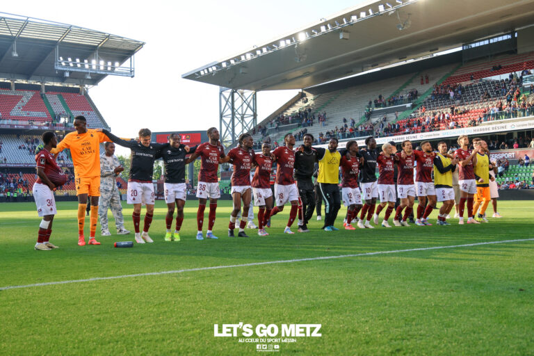 3,3K C’est la dernière ligne droite. Le FC Metz n’est plus qu’à deux matchs d’un retour en Ligue 1. Il faudra désormais sortir vainqueur d’un barrage qui s’annonce relevé, mais dont le contexte pourrait sourire aux Grenats. Ils sont toujours dans le coup. Les joueurs du FC Metz ont franchi un premier obstacle avec leur victoire dans les derniers instants de la rencontre face à l’USL Dunkerque (1-0), ce samedi 17 mai. Mais le plus dur reste désormais à venir, avec une double rencontre contre le seizième de Ligue 1… qui n’est autre que le Stade de Reims. Nos voisins champenois, auteurs d’un bon début de saison, se sont complètement effondrés au fil des semaines. Jusqu’à boire le calice jusqu’à la lie, avec la victoire au bout, du bout, du bout, du temps additionnel de la dernière journée de Ligue 1, du Havre AC contre le Racing Club de Strasbourg. Une 100è minute à la Meinau dramatique pour les Rémois, qui basculent en position de barragiste et font désormais face à un calendrier dantesque. Un calendrier des barrages modifié C’est un véritable marathon de fin de saison qui va démarrer pour le futur adversaire du FC Metz. Car si le Stade de Reims participe à ces barrages, il est aussi encore en lice pour remporter la Coupe de France ! Une finale face au Paris Saint-Germain prévue de longue date, le samedi 24 mai. Impossible, dès lors, de jouer les rencontres de barrage sur les dates prévues initialement – les jeudi 22 et dimanche 25. La LFP a donc décidé de décaler les deux rencontres, avec un match aller prévu le mercredi 21 mai à 20 h au stade Saint-Symphorien, et un retour prévu le jeudi 29 à 20 h 30 au stade Auguste-Delaune. Avec donc, entre temps, la finale de Coupe à jouer pour Reims. Un programme chargé qui ressemble à une nouvelle épine dans le pied des Rouges et Blancs, qui vont lutter pour leur avenir dans l’élite tout en pouvant glaner un titre national pour le moins prestigieux. Dans ce contexte, les Grenats peuvent se féliciter d’aborder ces échéances avec plus de sérénité. Bien qu’ils voient leur temps de préparation raccourci pour l’aller, ils verront celui du retour s’allonger, avec huit jours, quand leur adversaire sera occupé par d’autres enjeux. Une offre spéciale pour assister à FC Metz – Stade de Reims Dans ce contexte, le FC Metz remet le couvert pour que le stade Saint-Symphorien soit à l’unisson derrière les joueurs. Comme contre l’USL Dunkerque, l’entrée pour assister à la rencontre aller sera offerte aux abonnés. Par ailleurs, une offre spéciale est lancée ce dimanche 18 mai, de 14 h à 20 h, et permet aux supporters de bénéficier d’un tarif préférentiel de 20 € dans toutes les tribunes. Photo : Stephan Weyrath/LGM.