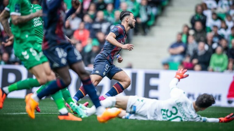769 Dans un match à rebondissements, le FC Metz s’est imposé face à l’AS Saint-Etienne. Une victoire Ô combien précieuse des Grenats dans le chaudron de Geoffroy Guichard qui permet au club à la Croix de Lorraine de s’emparer de la seconde place en attendant la rencontre de lundi entre Bordeaux et Grenoble. La dernière ligne droite dans cette course à la montée démarre plutôt bien pour les joueurs de Laszlo Boloni. Et après la belle victoire une semaine plus tôt face au concurrent direct bordelais, c’est un autre mastodonte estampillé Ligue 1 qui attendait les Grenats. Dans un chaudron chaud bouillant, le FC Metz est venu à bout de l’AS Saint-Etienne. Les Messins s’emparent par la même occasion de la seconde place au classement, synonyme d’accès à l’élite. Ils mettent ainsi la pression sur Bordeaux qui devra s’imposer lundi face à Grenoble pour espérer repasser devant. La fin de saison s’annonce donc passionnante. Tout aussi passionnante que cette rencontre à rebondissements entre Stéphanois et Messins. Solides et plus incisifs, les joueurs du club à la Croix de Lorraine ont rapidement tué le match en inscrivant trois buts en vingt-cinq minutes. Un début de match fracassant Dès l’entame de match, les deux écuries offraient aux 30 000 spectateurs un spectacle de haute voltige. Un football généreux porté vers l’avant, beaucoup de rythme et des Grenats qui se montraient rapidement dangereux par l’intermédiaire d’Ablie Jallow (9′). Plus précis dans leurs gestes et plus agressifs à la récupération, les Messins allaient être récompensés moins d’une minute plus tard. Bien servi par Cheikh Sabaly, l’inévitable Georges Mikautadze croisait parfaitement sa frappe pour tromper Gautier Larsonneur (10′). Le buteur maison qui confortait, une fois n’est pas coutume, son rang de meilleur buteur de Ligue 2. Malgré une belle réaction des joueurs de l’AS Saint-Etienne, la projection en contre-attaque du bloc messin allait faire très mal aux locaux. Et deux minutes après l’ouverture du score, Koffi Kouao doublait la mise sur un service de Lamine Camara (12′). Une entame parfaite pour le FC Metz et un début de parcours dantesque pour le jeune prodige sénégalais qui était même à deux doigts d’ouvrir son compteur personnel sous le maillot grenat dix minutes plus tard. Mais le néo-Messin manquait son face à face avec le portier stéphanois (22′). Photo by Alex Martin/FEP/Icon Sport Le coup de grâce de Mister Georges Que se passe-t-il lorsqu’un Lyonnais « d’origine » inscrit un doublé dans l’antre de Geoffroy Guichard et s’en va célébrer d’un « 69 » au nez et à la barbe des ultras Stéphanois ? Le troisième but inscrit sur penalty par Georges Mikautadze, à la suite d’un tirage de maillot dans la surface de Larsonneur, a bien failli être la dernière action du match. Le geste de l’international Géorgien, couplé à une manifestation de joie d’une poignée de supporters messins (hors parcage), a mis le feu aux poudres dans les tribunes et obligé l’arbitre de la rencontre à renvoyer les vingt-deux acteurs aux vestiaires pour une quinzaine de minutes. Le public de Saint-Etienne, sous le coup d’un sursis, allait donc devoir passer sa frustration autrement que dans l’invective. Une fois tout ce petit monde calmé et les joueurs de retour sur la pelouse, le football pouvait reprendre ses droits. Et le moins qu’on puisse dire c’est que les Verts allaient poser bien des difficultés aux Grenats et à Alexandre oukidja (32′ et 33′). Après une balle de 4-0 manquée par Georges Mikautadze (34′), le gardien messin allait offrir la réduction du score à Niels Nkounkou. Mal inspiré sur sa sortie, le portier mosellan empêchait Koffi Kouao d’intercepter la balle avant l’attaquant stéphanois qui n’avait plus qu’à la déposer au fond des filets d’une tête lobée (37′). Une réduction du score méritée pour l’AS Saint-Etienne qui aurait pourtant pu encaisser un quatrième but par Lamine Camara, encore lui. Mais sa frappe s’écrasait sur le montant droit de Larsonneur (39′). Photo by Alex Martin/FEP/Icon Sport Une indéniable solidité défensive En seconde mi-temps et avec deux buts d’avance, le FC Metz a su rester solide face à une équipe de Saint-Etienne bien plus entreprenante. Le plus dur ayant été fait dans le premier acte, il fallait désormais tenir le score. Privés de ballons (31% de possession de balle sur l’ensemble de la rencontre) les joueurs de Laszlo Boloni ont fait le dos rond. En dépit d’une large domination stéphanoise, les Messins ont tenu bon, même réduits à dix après l’expulsion de Lamine Camara (78′). Les Grenats ont accepté de subir et n’ont quasiment pas tremblé. L’efficacité de Georges Mikautadze en première mi-temps aura suffi pour renverser le chaudron et permettre au club à la Croix de Lorraine de s’emparer provisoirement de la seconde place. Lamine Camara, le métier qui rentre Véritable prodige en devenir, Lamine Camara a une nouvelle fois ébloui la rencontre par ses gestes et sa fougue. Une envie et innocence qu’il devra apprendre à canaliser. Le milieu de terrain messin a multiplié les coups de génie. Rapide, précis dans ses passes, avec une aisance et une propension à éliminer ses vis à vis, Lamine Camara a offert le second but à Koffi Kouao. Toutefois, il aurait pu ouvrir son compteur personnel à deux reprises (10′ et 39′). Ce ne sera que partie remise. En attendant, le natif de Tivaouane devra purger certainement deux matchs de suspension suite à son expulsion. Jeune et encore peu expérimentée, la pépite grenat est une proie facile pour les soldats de métier. Et le phénomène de Génération Foot en a fait les frais en répondant à la provocation à plusieurs reprises durant la rencontre, et jusqu’à la fois de trop. On pourra regretter le manque de coaching de Laszlo Bolo