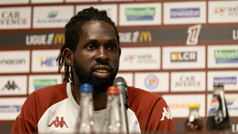 3,3K Boubacar Traoré a été présenté à la presse locale par Frédéric Arpinon. Le Malien semble être prêt à relever ce nouveau défi en Ligue 1 avec le FC Metz. La traditionnelle présentation des nouveaux joueurs à la presse locale, avait comme un air de déjà vu, ce jeudi au centre d’entraînement de Frescaty. Et pour cause, Frédéric Arpinon accompagnait le milieu de terrain malien, Boubacar Traoré, de retour au bercail et prêté au FC Metz par Wolverhampton pour la saison. Souriant et décontracté, le néo-Messin a tenu à rassurer sur son état de forme après une saison quasiment blanche, due à une blessure au genou. Venu pour se relancer, le natif de Bamako a déjà hâte de retrouver le public de Saint Symphorien. Frédéric Arpinon : « Boubacar Traoré avait envie de rejouer à Metz » Pour le directeur sportif du FC Metz, Frédéric Arpinon, l’aubaine de récupérer l’ancien grenat, parti définitivement il y a deux ans pour une coquette somme, sonnait comme une évidence. Mais cela ne fût pas sans difficulté : « Son arrivée a été longue à se dessiner. Récupérer un joueur de son niveau qui joue en Premier League, ce n’est pas facile pour un club comme Metz. Finalement on y est arrivé. C’était important pour nous, pour le coach et pour l’équipe d’avoir un joueur de ce niveau, à ce poste ». Bien évidemment, la manœuvre ne fût possible qu’au prix d’efforts consentis par le club anglais et par le joueur. « Pour tout vous dire, Wolverhampton a fait un effort, mais je voulais aussi souligner celui qu’a fait Boubacar sur son salaire pour nous rejoindre. S’il a fait cet effort, c’est qu’il avait envie de rejouer à Metz et de se relancer », explique Frédéric Arpinon. Boubacar Traoré : « Je suis resté le même » Tout sourire de retrouver l’environnement grenat, « Bouba » a également tenu à rassurer sur sa forme actuelle et sur les progrès qu’il a fait depuis son départ de Lorraine. « Je me sens physiquement à 100%. Je suis resté le même, j’ai peut-être progressé sur le plan physique et dans le jeu », avoue le milieu de terrain. Et d’ajouter : « Je suis très heureux d’être avec mes coéquipiers, de les retrouver, très heureux d’être de retour à Metz. Je suis là pour me relancer mais surtout pour aider l’équipe à atteindre son objectif de maintien ». Son profil athlétique manquait dans ce milieu de terrain très technique. Avec son arrivée, le FC Metz est un peu mieux armé pour défier des gros calibres de Ligue 1. Son entente avec Benjamin Stambouli, Jessy Deminguet et Gauthier Hein sera déterminante. Mais les premières impressions sont déjà bonnes : « J’ai hâte de jouer la compétition avec mes coéquipiers du milieu de terrain, les premiers échanges ont été très bons », se félicite Boubacar Traoré. Son arrivée fût une aubaine pour le club à la Croix de Lorraine. Bouba est de retour et a hâte d’en découdre. Premier rendez-vous en compétition pour le Malien et pour le FC Metz, dimanche 17 août à Saint Symphorien face à Strasbourg. Mais avant cela, les Grenats ont un dernier match de préparation, ce samedi face à Hoffenheim. Crédit photos : Julien Buret/LGM