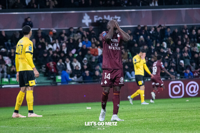 566 Les mauvaises habitudes reprennent pour le FC Metz. Les grenats n’ont pas su continuer la série de victoires entamée avant la trêve face aux Chamois Niortais. Un bien mauvais résultat nul (0-0) face au 19e de Ligue 2 BKT. Le club à la croix de Lorraine abordait cette rencontre avec l’objectif de glaner, pour la troisième fois de suite en championnat, les trois points synonymes de victoire. Pour l’occasion, Laszlo Boloni avait opéré trois changements par rapport au match de la semaine passée face à Elversberg. Traoré remplaçait Kouyaté en défense centrale, tandis que Jean Jacques et Niane prenaient respectivement les places de Maïga et Gueye. #FCMCNFC [ ℙ𝕣𝕠 ]🔥 Le onze de départ grenat vous est présenté par @GroupeH2s ! pic.twitter.com/ppzC7av93Y— FC Metz ☨ (@FCMetz) December 26, 2022 Le FC Metz trop imprécis en première mi-temps face aux Chamois Niortais Les grenats essayaient d’imposer leur jeu dès le début du match, et Ibrahima Niane était tout proche d’ouvrir le score dès la minute de jeu. Dans la foulée, l’attaquant messin ratait l’impossible devant une cage déserte (3′). Et tandis qu’Alexandre Oukidja captait sereinement la première occasion niortaise, Kévin N’Doram se blessait. Il était contraint de céder sa place au jeune Arthur Atta, qui allait jouer ses premières minutes en match officiel avec son club formateur. Les Messins enchaînaient les occasions (26′ et 27′), mais par deux fois, les Deux-Sévriens s’en sortaient avec beaucoup de réussite sur leur ligne. Les grenats avaient les situations, notamment par Mikautadze (37′), mais étaient trop imprécis pour espérer ouvrir le score. Ils n’étaient pas non plus aidés par un Ibrahima Niane en manque de confiance et d’initiative. Grenats et chamois se quittaient sur un triste score nul et vierge à la mi-temps. Georges Mikautadze. Un second acte teinté d’un gros manque de réussite Au retour des vestiaires, Lamine Gueye remplaçait Ablie Jallow pour tenter d’appuyer sur les faiblesses latérales des Niortais. Comme en première mi-temps, les grenats insistaient par Gueye (53′), puis Maziz (60′), repoussé in extremis sur la ligne de but. Deux minutes plus tard, Mikautadze aurait pu provoquer le penalty de la gagne, mais l’arbitre signalait la poursuite du jeu. À vingt minutes du terme de ce match, les Messins se montraient plus insistants sur les côtés, grâce à une bonne entente entre Atta et Gueye. Mais ce dernier pêchait à de trop nombreuses reprises dans le dernier geste. Niort n’inquiétait pas vraiment le FC Metz, et la seule occasion en deuxième mi-temps des chamois était très bien captée par Oukidja. Un dernier frisson venait parcourir Saint-Symphorien grâce à Lamine Gueye, mais Michel employait les grands moyens pour sauver le point du nul. Arthur Atta réalisait de son côté une très bonne deuxième mi-temps pour sa première apparition en professionnel. Arthur Atta a vécu contre Niort sa première apparition en professionnel. Un bien triste FC Metz face à une équipe de Niort qui n’aura pas, de son côté, proposé son meilleur football. Le club à la croix de Lorraine a livré une prestation bien trop moyenne face au 19e de Ligue 2 BKT, malgré quelques bonnes situations. Prochain rendez-vous pour les grenats dès ce vendredi à Grenoble. La galerie photo du match FC Metz 0 – 0 Chamois Niortais FC MetzOukidja – Kouao, Traoré, Candé, Udol – N’Doram (Atta, 14′), Jean-Jacques – Jallow (Gueye, 46′), Maziz, Niane (Sabaly, 68′) – Mikautadze (Joseph, 88′) FC Chamois NiortaisMichel – Durivaux, Passi, Kilama (Mbondo, 82′), Vallier – Olaitan Ishola (Sagna, 59′), Kaboré, Benchamma (Zemzemi, 68′), Renel (Moutachy, 82′) – Boutobba, Merdji Crédit photo : Lilian Bordron / Let’s Go Metz