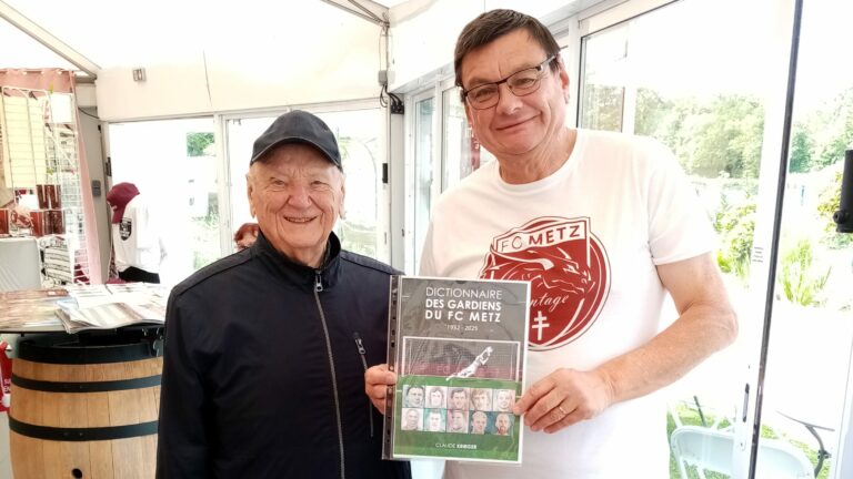 4,K À l’occasion de la sortie de son dictionnaire des gardiens, Claude Krieger s’est livré sur sa passion du FC Metz et sur ce poste si particulier qui fait beaucoup parler ces derniers jours du côté du club à la Croix de Lorraine. Vous ne savez pas quoi lire cet été à la plage ? Claude Krieger vous propose un voyage au cœur de l’histoire avec son nouveau livre, le « Dictionnaire des gardiens du FC Metz ». De Michel Ettore à Grégory Wimbée en passant par Farid Mandragon, soixante-douze portiers grenats qui ont porté les couleurs du club à la Croix de Lorraine, rassemblés dans un même ouvrage. Des anecdotes, des interviews, des aquarelles, et beaucoup de nostalgie pour tous les amoureux du FC Metz, et un ouvrage préfacé par l’éternel président grenat, Carlo Molinari. Pour la sortie de son livre, Claude Krieger s’est arrêté au micro de Let’s Go Metz. Claude Krieger : « j’ai toujours été fasciné par ce poste » Claude, tu es un supporter historique du FC Metz, peux-tu nous raconter comment tu es tombé dans la marmite grenat ? Mon oncle Robert, habitait à quelques centaines de mètres du stade, m’a emmené pour la première fois à Saint Symphorien au milieu des années 70. J’avais alors 13 ans. Tout commence là, où on pouvait voir évoluer les joueurs locaux. Avant de pénétrer en tribune, il y avait un immeuble à l’entrée du stade, (qui existe toujours) dénommé « résidence du stade », où certains joueurs de l’équipe fanion habitaient d’après mon oncle. J’étais fasciné par cette précision, je pourrais peut-être les apercevoir, ces artistes qui allaient s’illustrer sur la rectangle vert tout proche, peut-être même les saluer, leur parler un jour, qui sait ? Il m’a inoculé le virus grenat. Depuis je n’ai cessé d’y retourner pour totaliser actuellement 710 rencontres à domicile. Tu as sorti l’an passé un recueil de 60 témoignages d’anciens joueurs du FC Metz, tu avais sorti également deux tomes d’un quiz 100% grenat, tu remets ça cette année avec ce dictionnaire des gardiens, à ce rythme on peut envisager un livre par an sur le club à la Croix de Lorraine ? Je prépare un « Dictionnaire des entraîneurs (1932- 2025) » sur le même modèle que le présent ouvrage sur les gardiens. Pour prolonger le très complet et passionnant livre de Pascal Gouttfriend « FC Metz 1932-2002 : L’intégral des Grenats » et j’envisage de prolonger le plaisir avec « La compilation des Grenats (2002 – 2025) ». J’ai également un projet de jeu de société, sans rapport avec le FC Metz. Tu en parles en avant-propos, tu as toujours été fasciné par le poste de gardien. Les gardiens sont souvent les oubliés des médias lorsqu’il y a des grands moments de liesse, on a tendance à parler beaucoup plus des attaquants, finalement cet hommage que tu leur fais, il n’est pas anodin ? Ayant eu une petite expérience de gardien, étant jeune, j’ai toujours été fasciné par ce poste à part. Quelquefois sauveur de son équipe, sur un arrêt déterminant, qui peut changer le destin d’une rencontre, à l’inverse, une bourde, un raté peuvent lui attirer des critiques acerbes. On le voit cette année, avec la montée en Ligue 1, c’est une nouvelle ère qui démarre au FC Metz, particulièrement au poste de gardien, on risque d’attendre longtemps l’héritier d’Alexandre Oukidja, et ses 212 matchs officiels. Troisième gardien de l’histoire du club en termes de matchs joués. Tu penses qu’on peut encore trouver à notre époque des portiers fidèles sur la longévité comme Alex ? Cela devient très rare. Chacun convoite une place de numéro 1 pour se montrer. Mais l’argent joue également un grand rôle. Arnaud Bodart, par exemple, a préféré partir pour un poste de numéro 2 à Lille plutôt que de rester titulaire à Metz. La Belgique sera encore plus proche pour lui désormais. Tu évoques 72 gardiens dans ton livre, tu ne les as bien sûr pas tous vu évoluer, mais tu en as connus pas mal malgré tout, pour toi, quels sont tes deux gardiens fétiches dans cette liste ? Sans hésitation aucune : Michel Ettorre pour son palmarès et sa longévité impressionnante et André Rey pour sa présence et sa grande classe, un portier fiable. C’est la sortie à ne pas louper cet été, le dictionnaire des gardiens du FC Metz. D’intérêt public pour tous les amoureux du club à la Croix de Lorraine, le nouvel ouvrage de Claude Krieger est disponible à la boutique officielle du FC Metz, ainsi que dans toutes les librairies spécialisées et sur les plateformes en ligne. Propos recueillis par Gérald RusselloCrédit photo : Claude Krieger